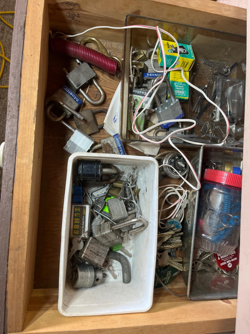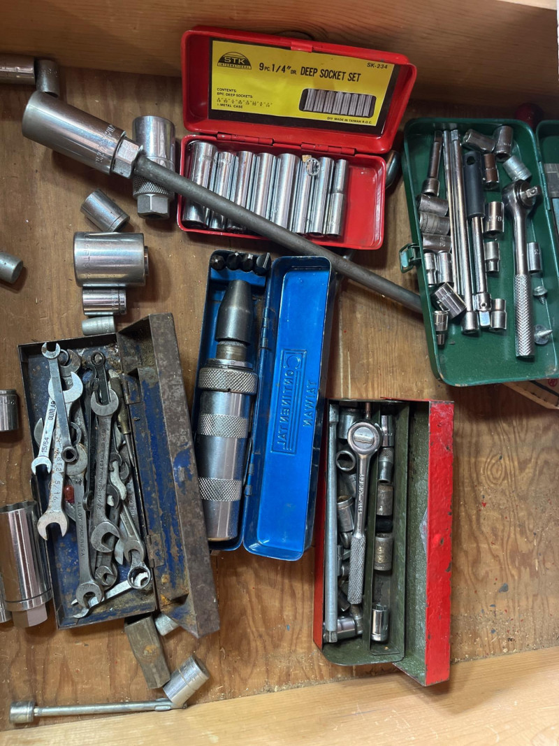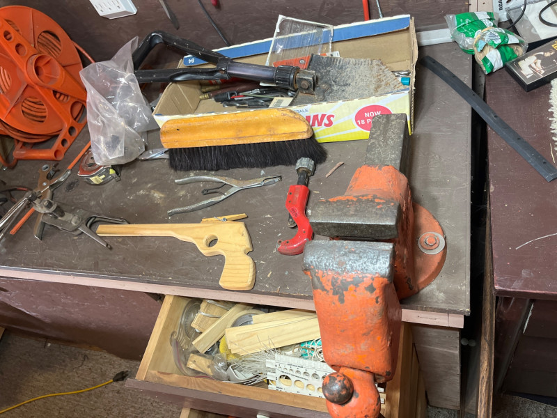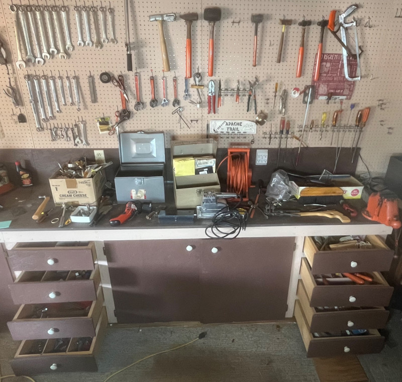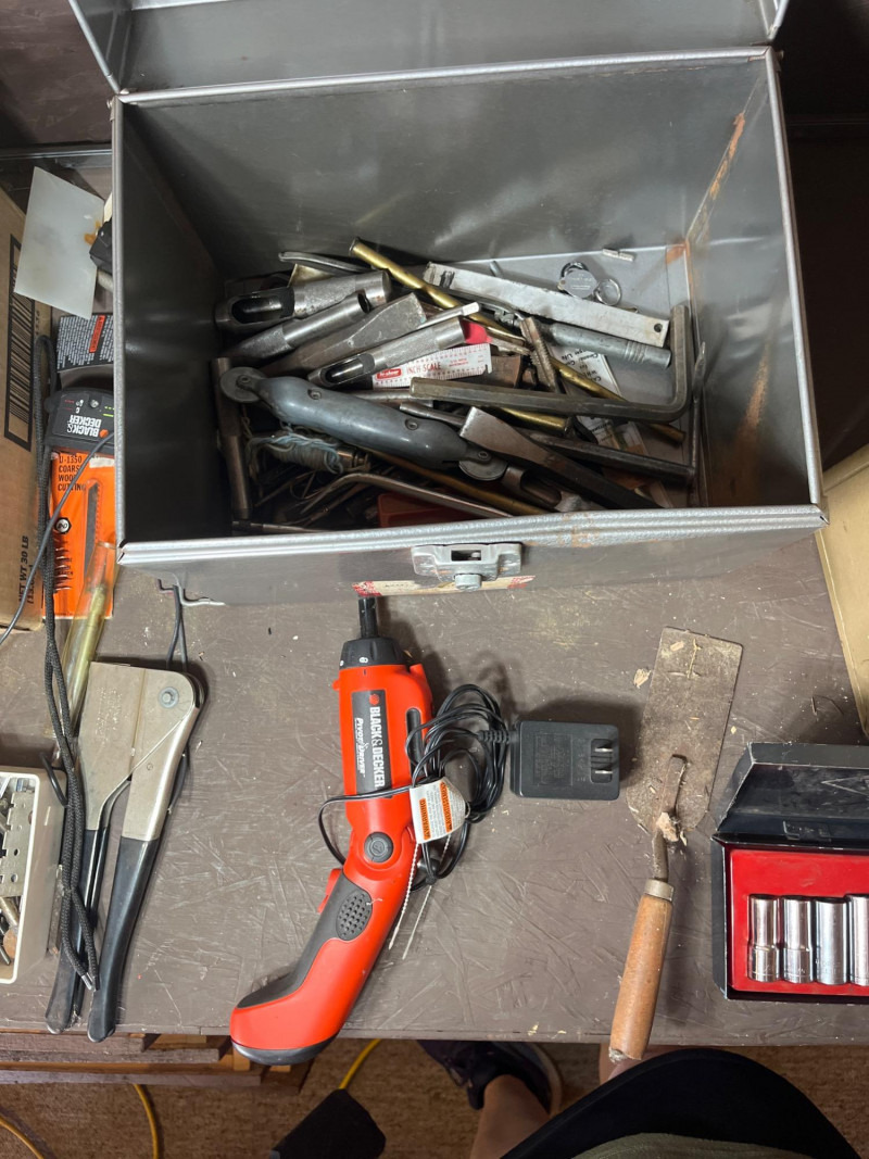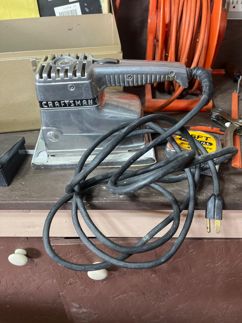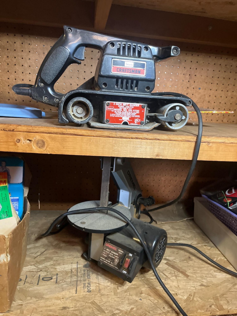 Garage Cabinet Cleanout Lot # 1 This lot includes everything shown in photos and features a 3" belt sander, 1" upright belt sander, a craftsman vibrating sander, bench mounted clamp, many files, craftsman wrenches, mallets, hammers, and even a rubber band gun just for fun. There's really too much to list here! Come prepared to pack up heavy tools and to remove the bench mounted clamp yourself. Electric tools have not been tested.