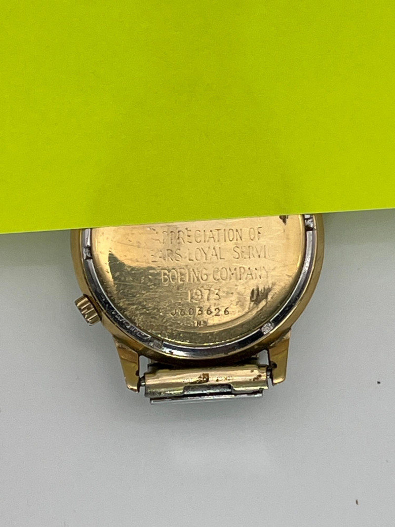 Men’s Vintage Boeing Bulova Accutron Watch in Original Box -See Photos Bulova watches have been known for their precision and timeless styles since the late 1800's when they were founded by Joseph Bulova, a Bohemian immigrant, in New York. In the 1960's Bulova pioneered standardized watch production and developed the first fully electronic watch, the Accutron. This watch likely needs some restoration work. The Speigel band is quite worn (but functional) and the crystal (glass) front is pretty scratched. The watch is not currently working but it may just be the battery or needs winding (not sure of power type). The back is inscribed as it is an anniversary gift from Boeing, circa 1973. The post-it note is used to block out the name of the recipient of this gift/name in the inscription.