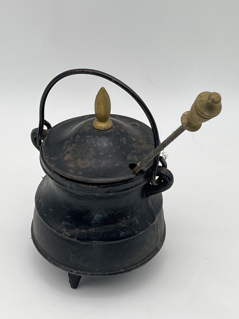 Lot # 22 - Cast Iron Smudge Pot Fire Starter Cauldron with Lid and Pumice Wand