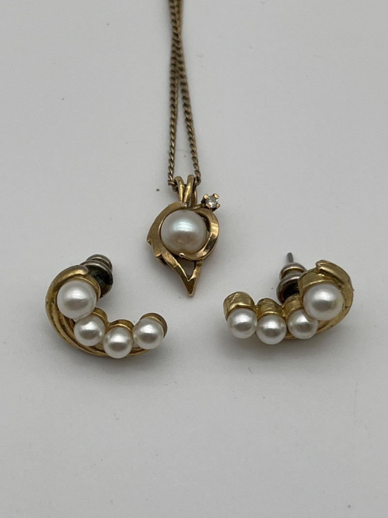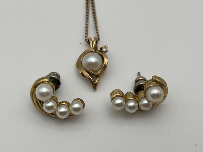 Lot # 25 - Mid-Century Pearl Pendant with Matching Earrings