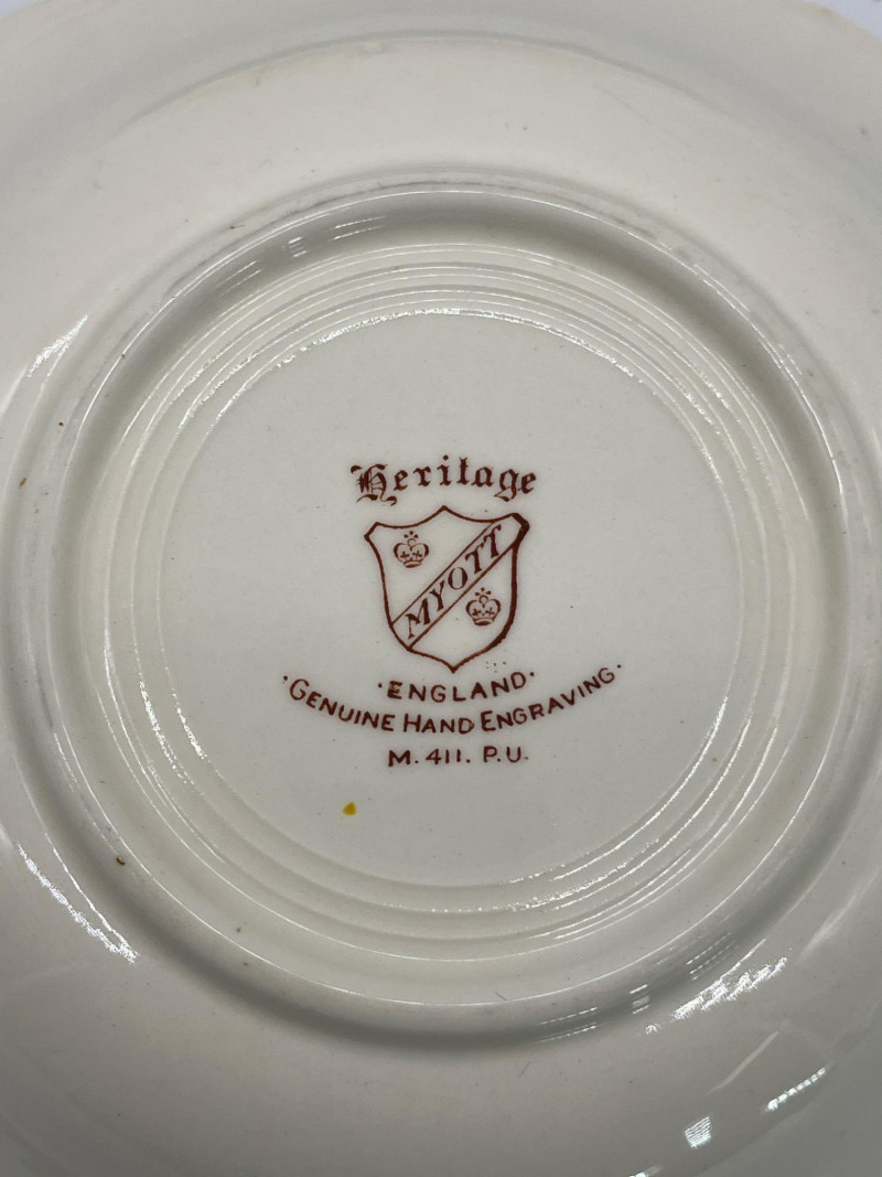 Myott England Heritage Pattern Mid-Century Pattern China Set This set includes: Most pieces have some crazing and a few have extensive crazing. Any major chips are shown in photographs.