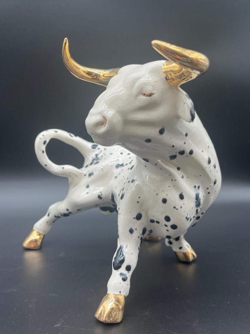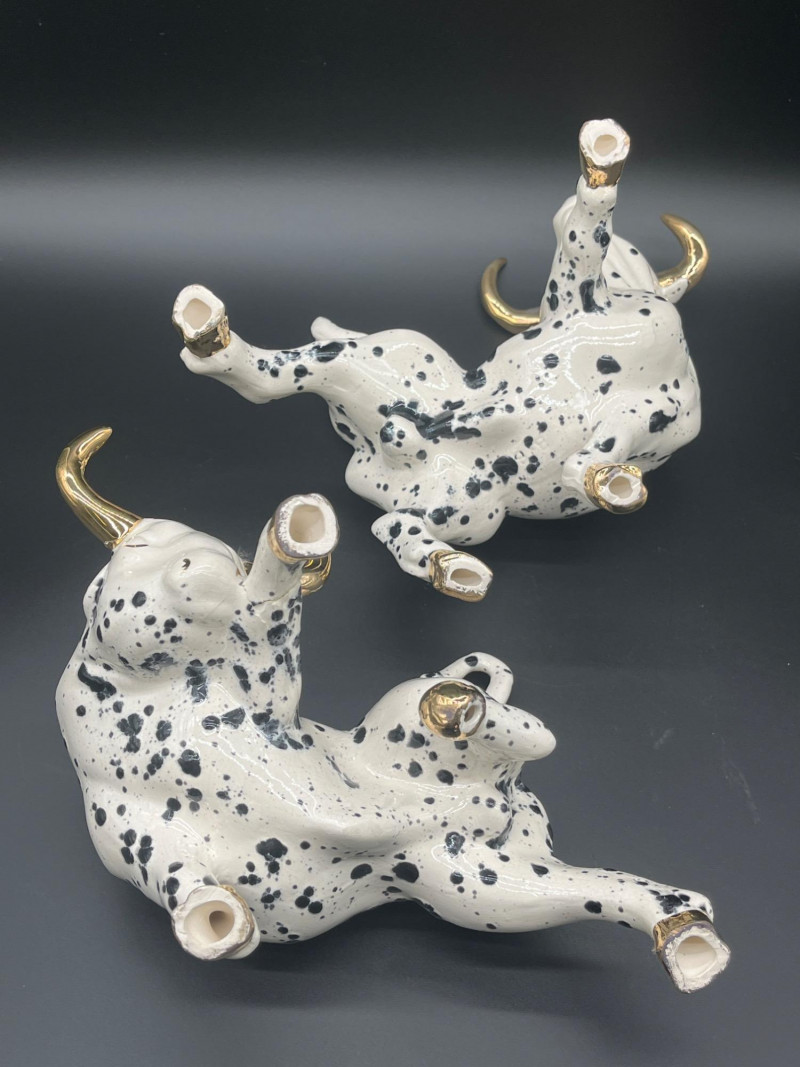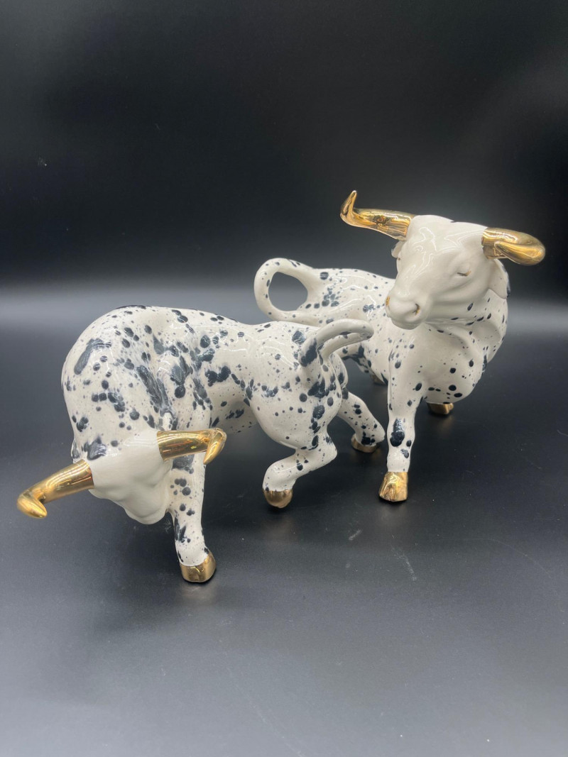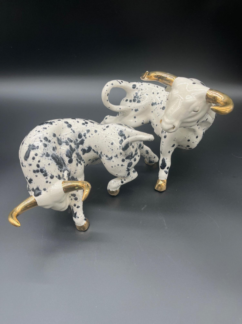Lot # 34 - Ceramic Hand Painted Mid-Century Longhorn Bulls