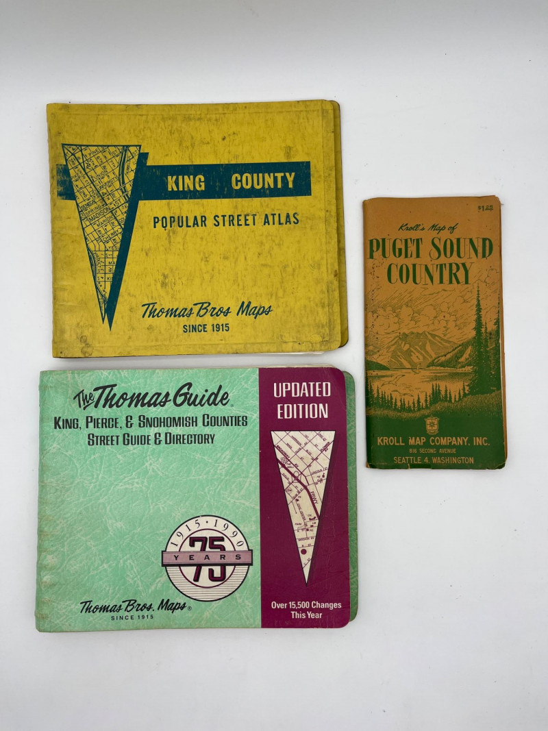 Vintage Seattle Area Maps Circa Mid-1970s to 1990 These are well used but in good condition with no rips or tears. I do not see any writing in them.