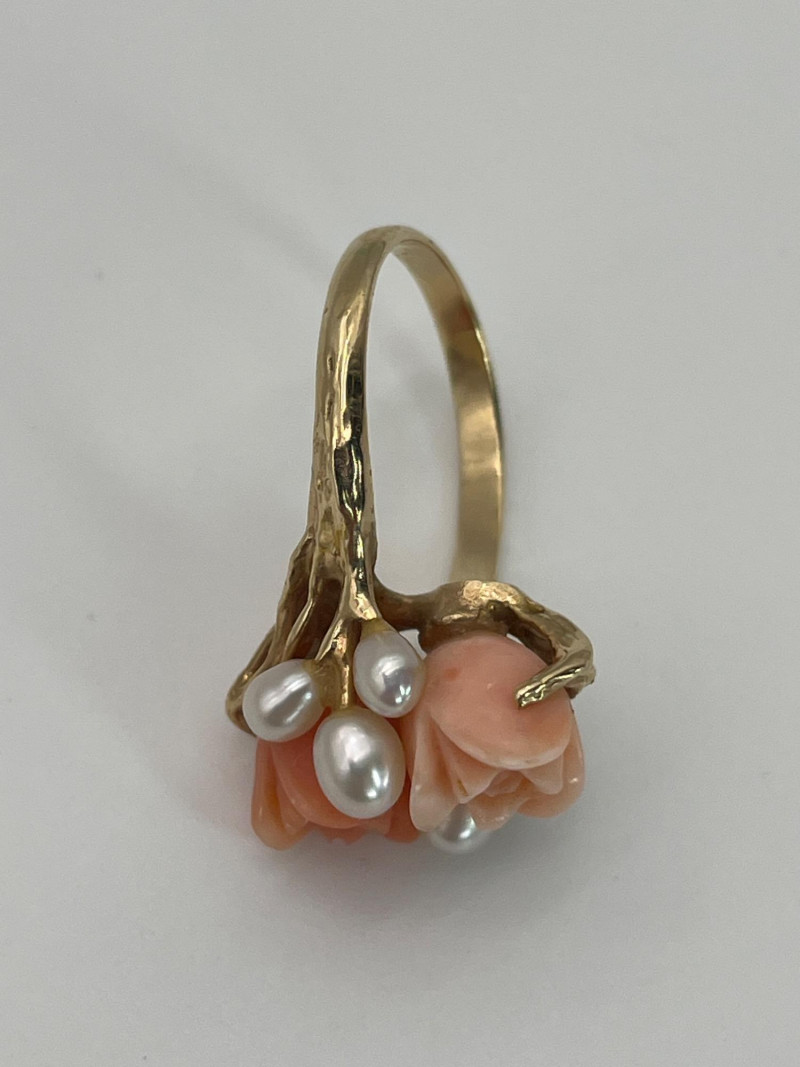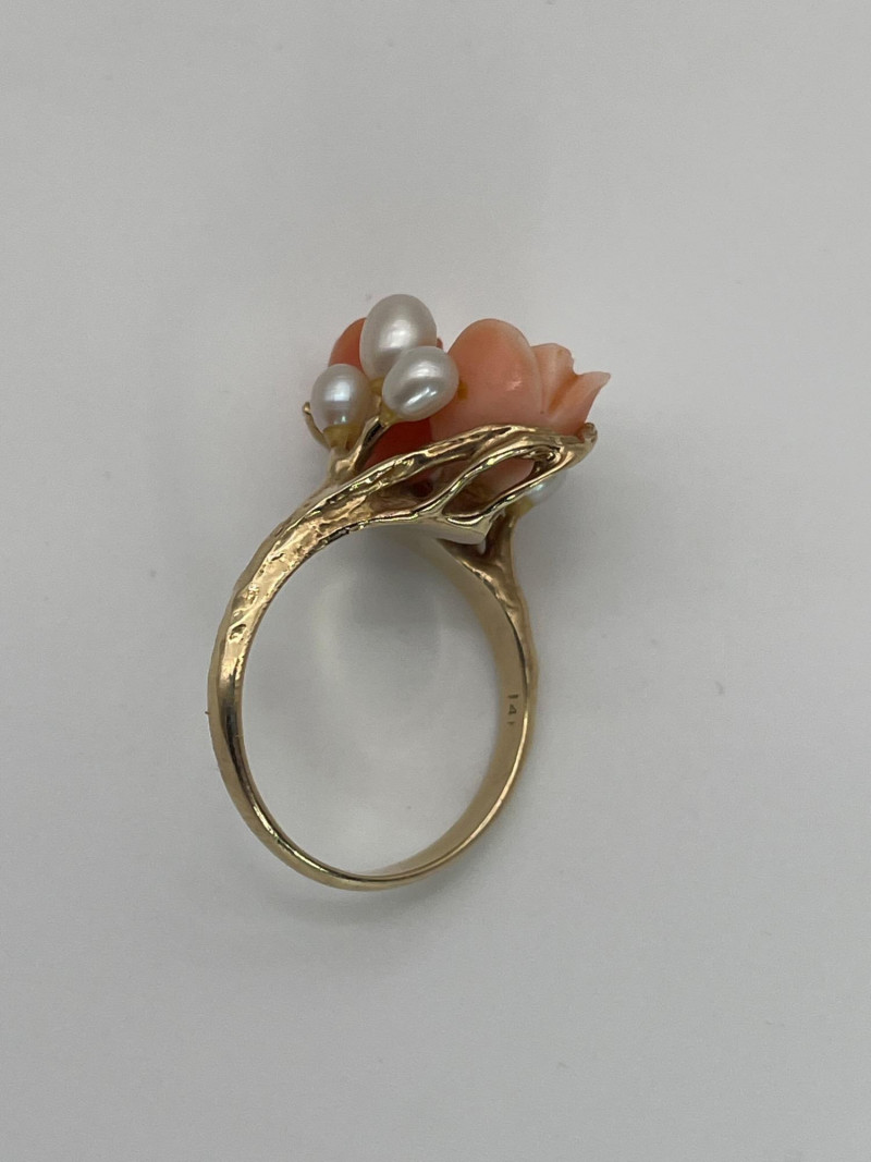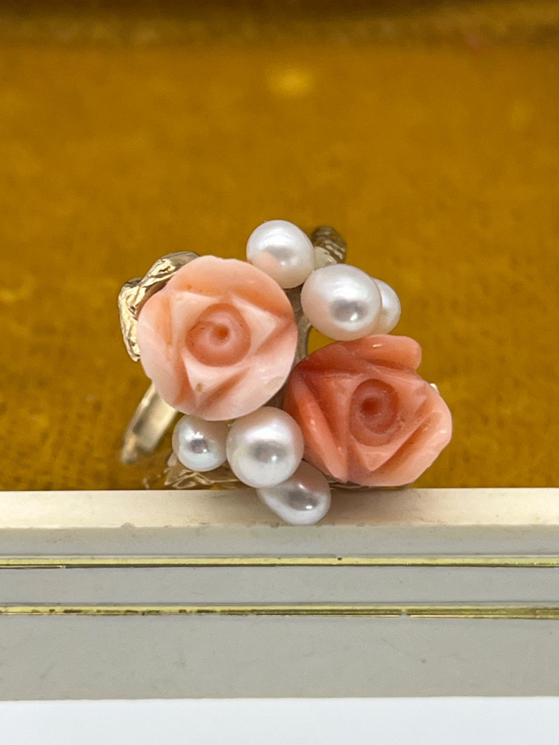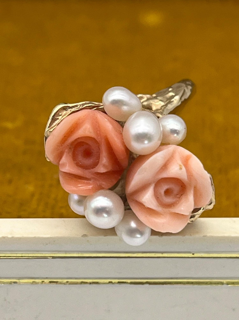 Maui Divers of Hawaii Pink Coral & Pearl Ring, Pendant & Earring Set Maui Divers Jewelry has been designing and crafting Hawaiian inspired jewelry in Honolulu since 1958. It all started when in 1959, the company discovered black coral which later became the state's official gem, and the adventure diving company began creating some of the worlds most coveted coral and pearl jewelry. This set is likely from the early to mid 1970s. This vintage set includes: