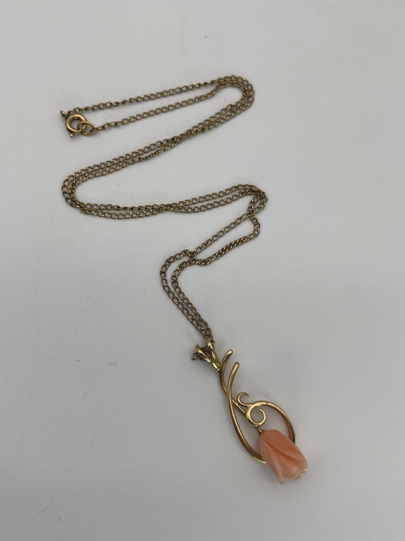 Lot # 45 - Maui Divers of Hawaii Pink Coral & Pearl Ring, Pendant & Earring Set