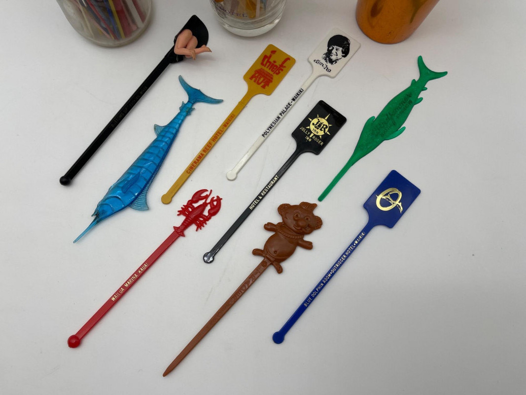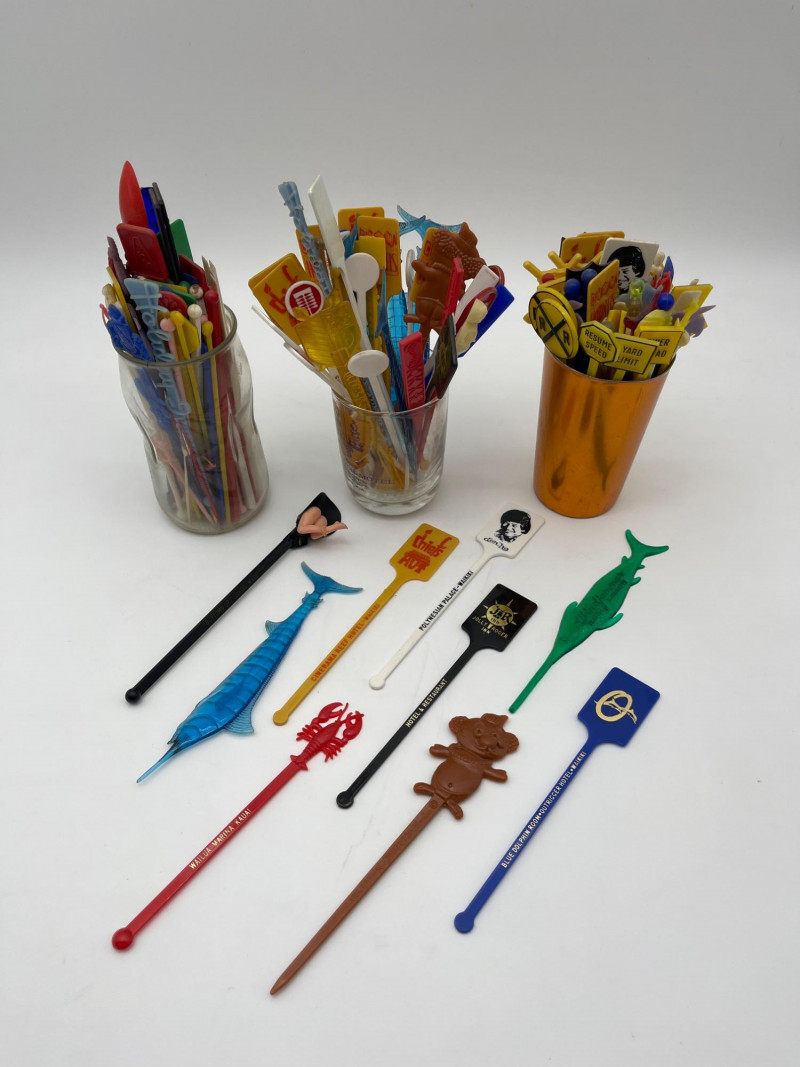 Vintage Tourist Bar and Lounge Swizzle Sticks When I tell you there's a collector for everything, this is exactly what I'm talking about! I admit though, these are pretty cool. These are mostly from the 1970's and from iconic establishments such as Trader Vic's, the Blue Dolphin Room, Don Ho, Cinerama, Jolly Roger, and lots more! Just for fun, there's even a fun "bottom's up" swizzle stick. If you don't know what that is, you'll know it when you see it!