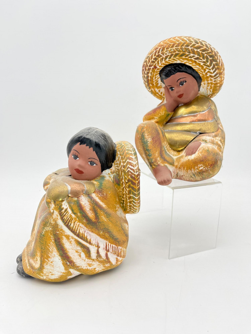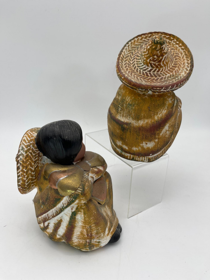 Lot # 53 - Mexican Pottery Platter, Figurines, and Brass Pitcher Lot