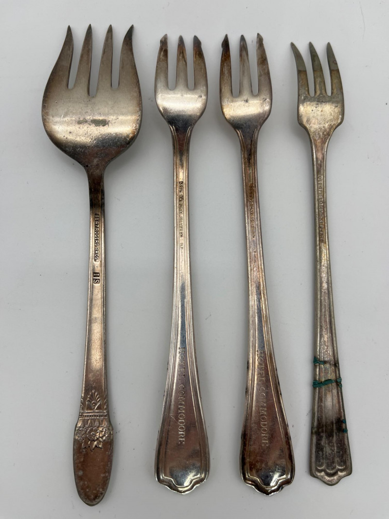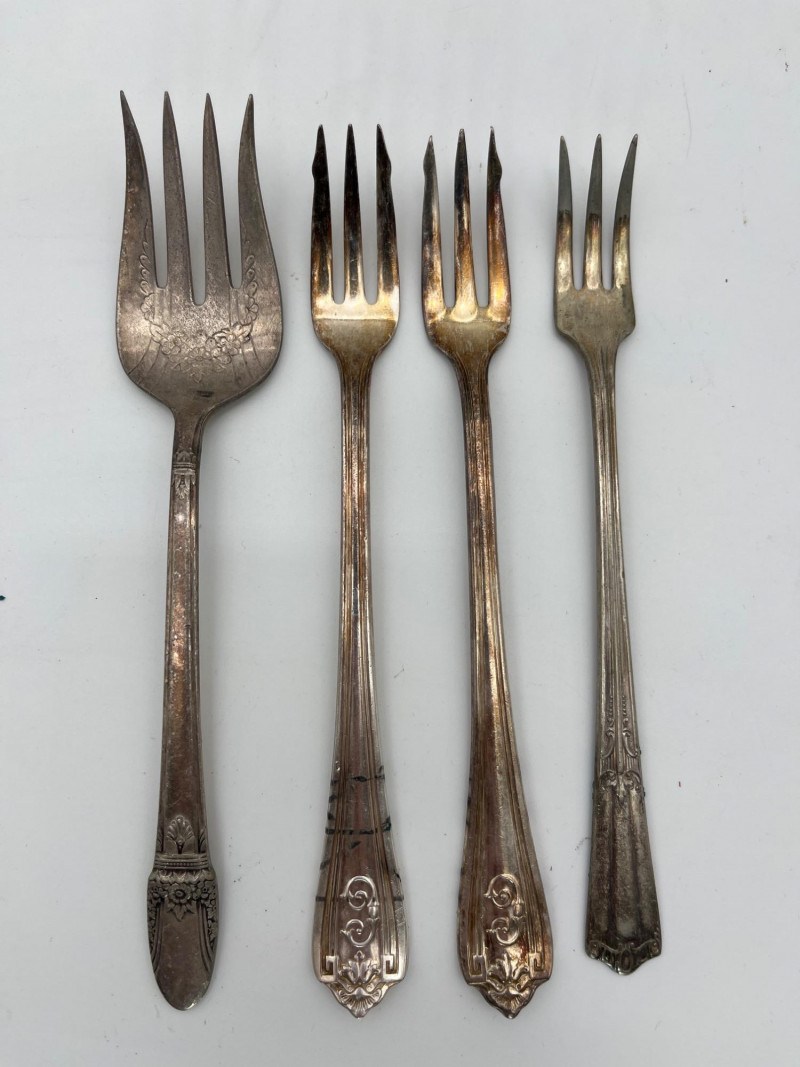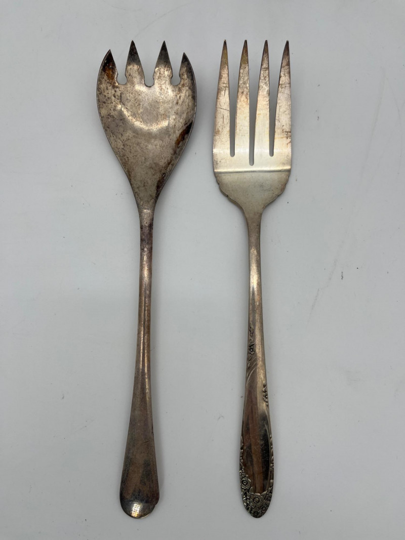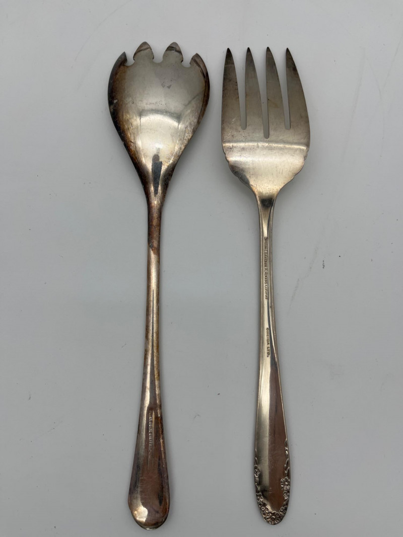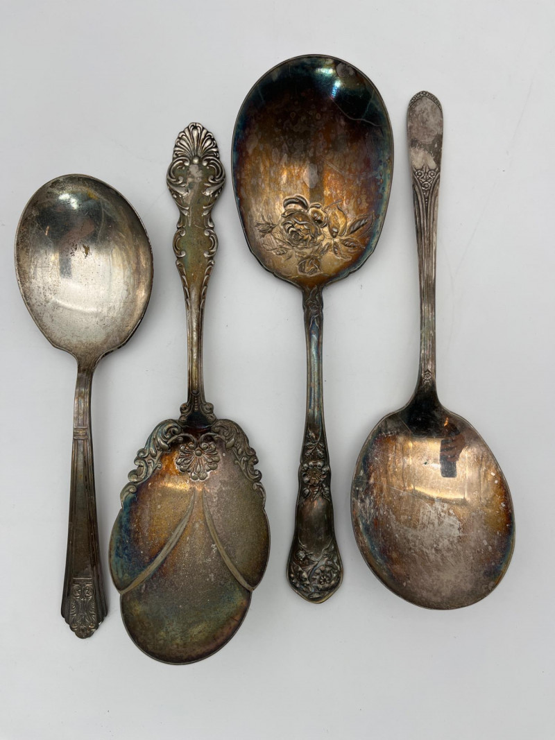 Silverplate Utensils Lot Featuring Many Serving Pieces There is a large assortment of pieces here from makers all over the world. There are two types of tongs, multiple large serving spoons, meat service spoons, slotted spoons, sugar and condiment spoons, and much more. Styles range from Victorian to modern and nearly everything in between!
