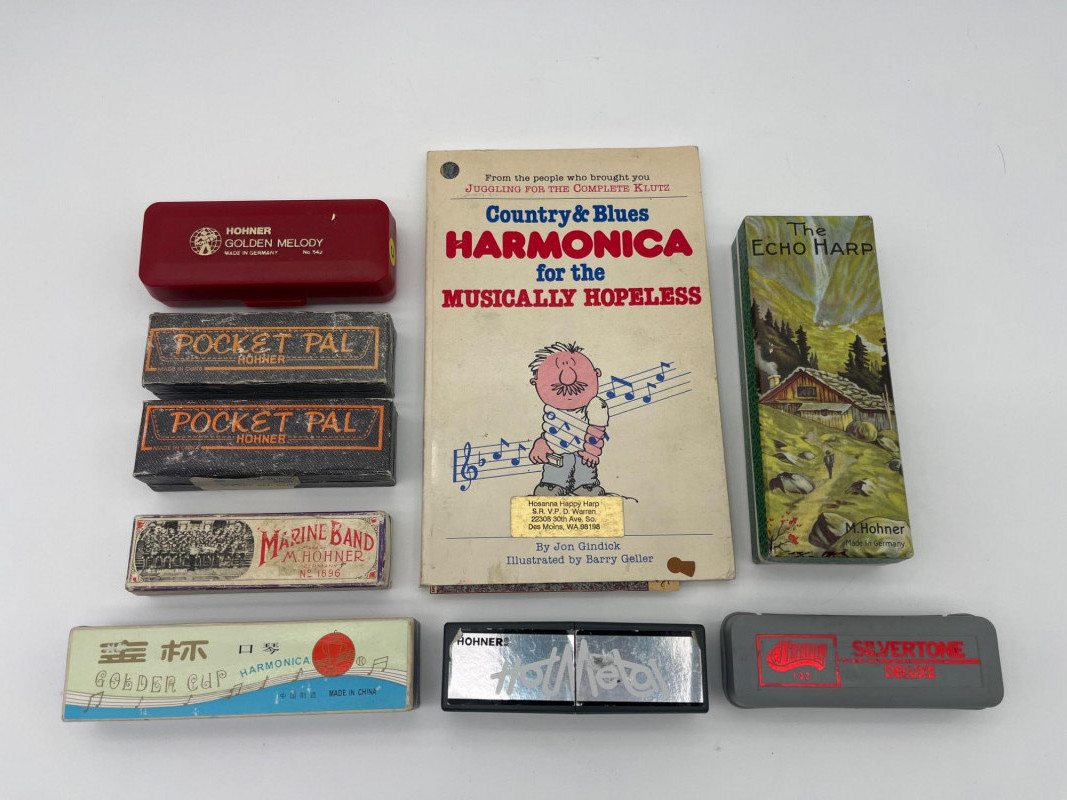 Vintage Harmonica Collection Including Instructional Book This lot includes: