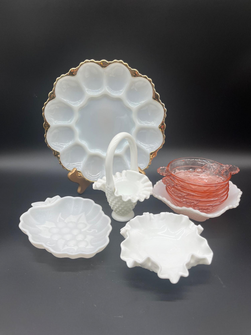 Lot # 60 - Milk Glass And Pink Depression Glass Bowls