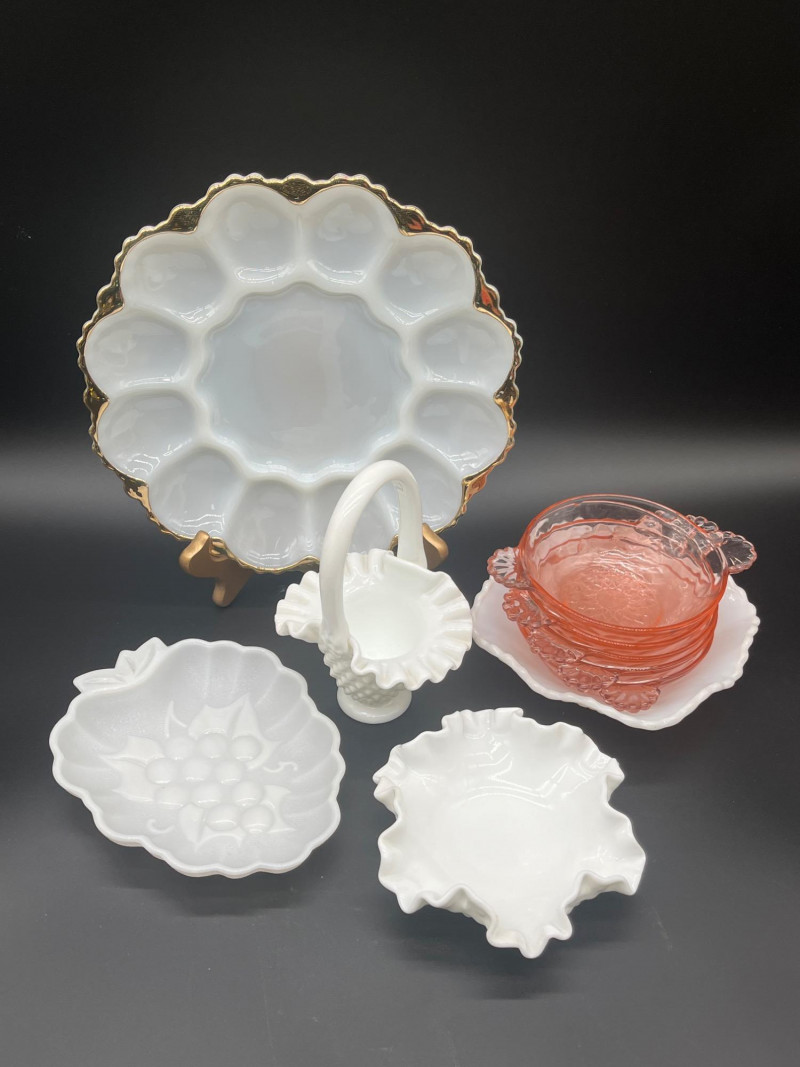 Milk Glass And Pink Depression Glass Bowls