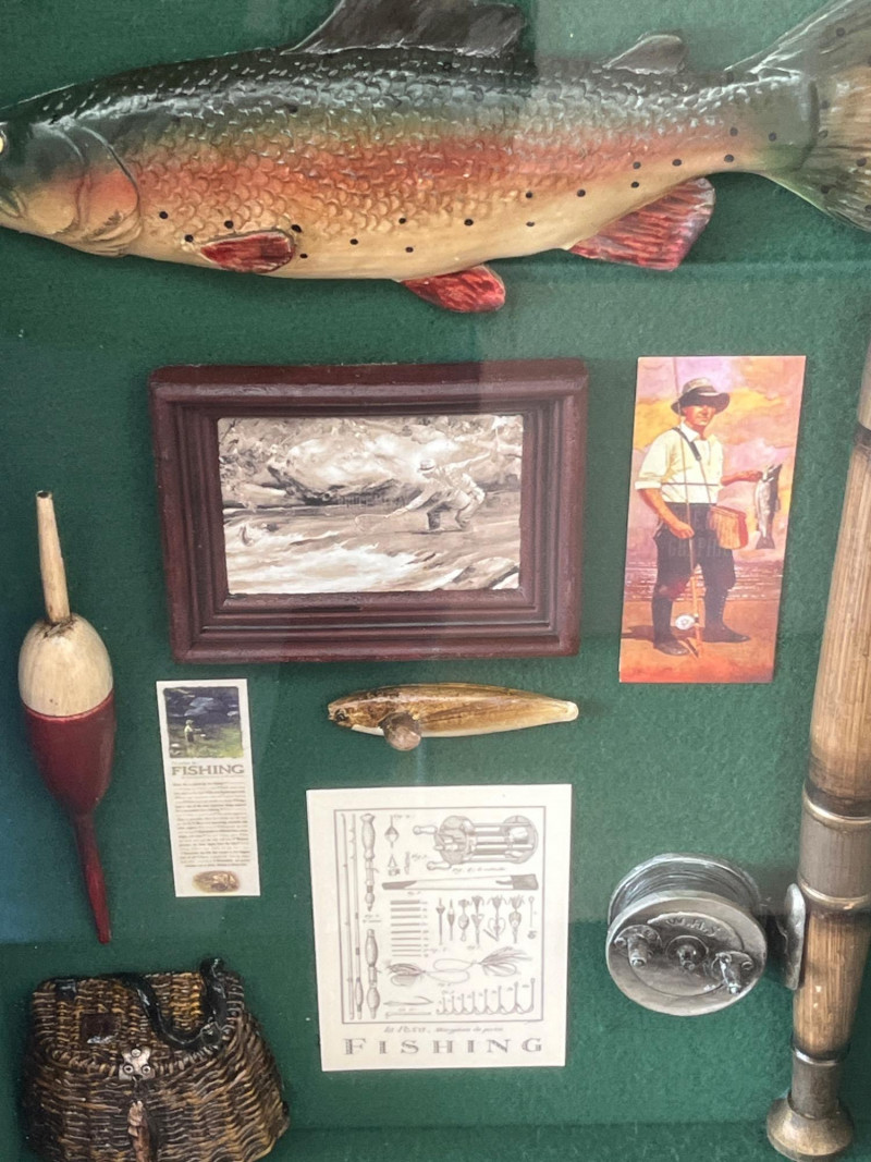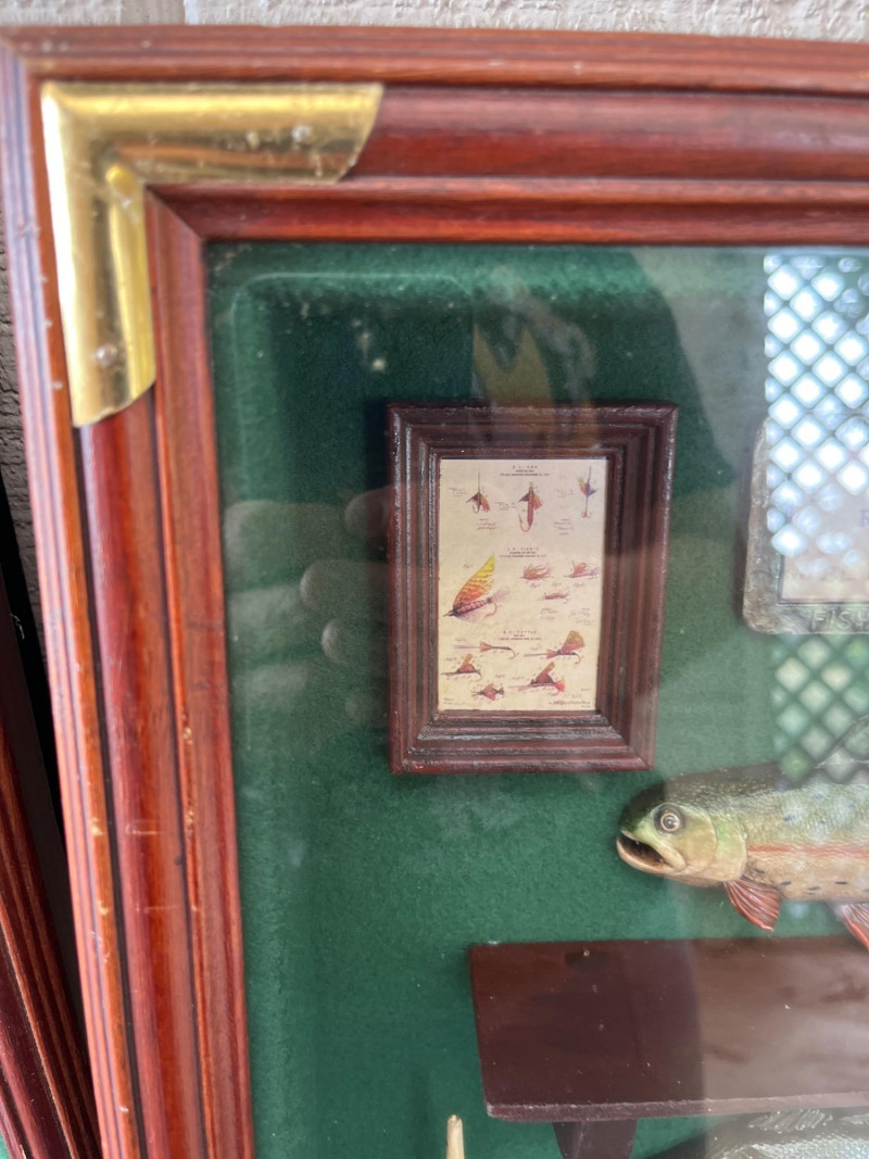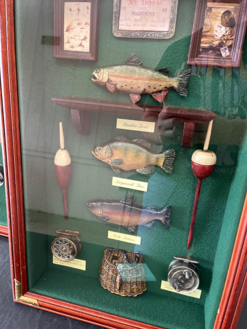 Wood Framed Fishing Themed Shadow Boxes These would make a charming gift for the fishing aficionado! Both measure 21" tall and 13 1/2" wide and 3" deep