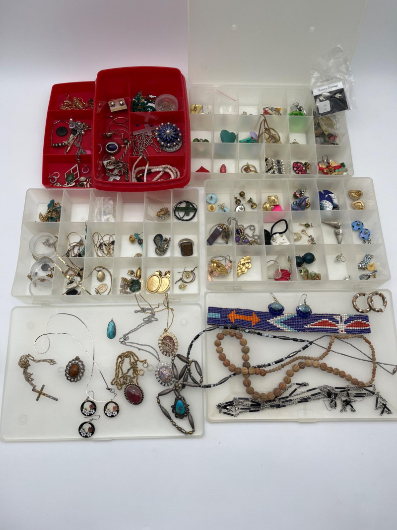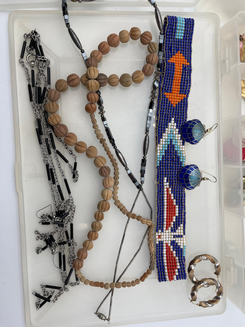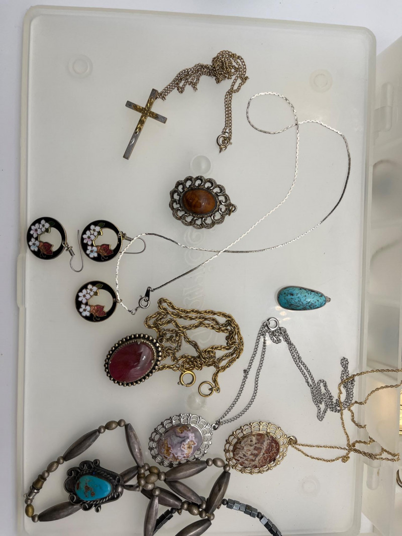 Costume Jewelry Lot #2 This lot includes everything shown here. A few notable items have been photographed separately including a silver ring (not stamped) with a beautiful natural stone and a pendant with a lovely blue stone.