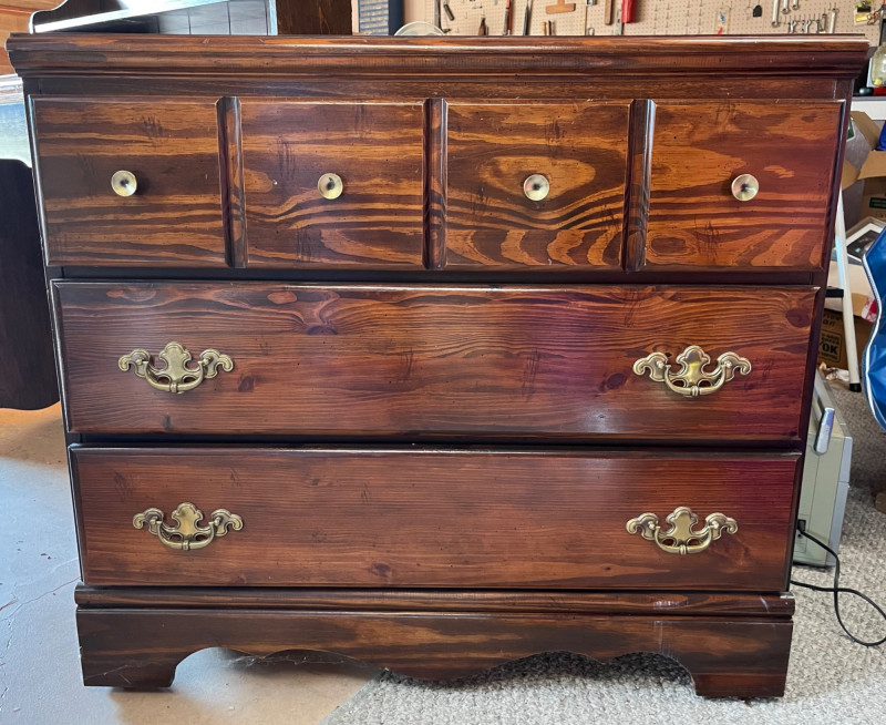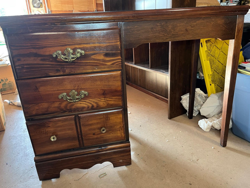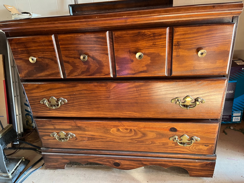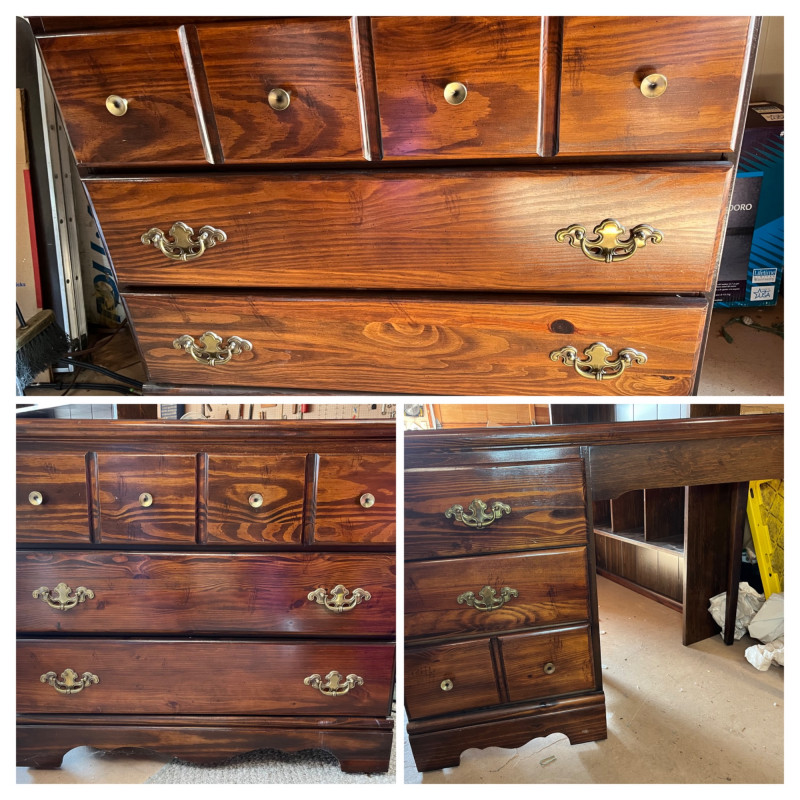 Bedroom Furniture - Two Small Dressers and Desk This is a great collection because small dressers are so versatile! Dressers are 35" across, 17" deep, and 31" tall. The desk is 43 1/2" wide 17" deep and 31" tall.