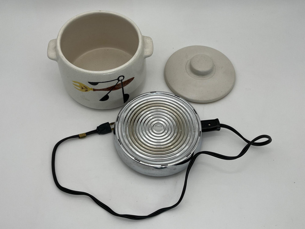 West Bend Mid-Century Electric Warming Bean Pot The pot is 7" wide by 5" tall. The heating element is untested.