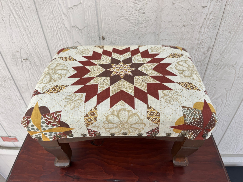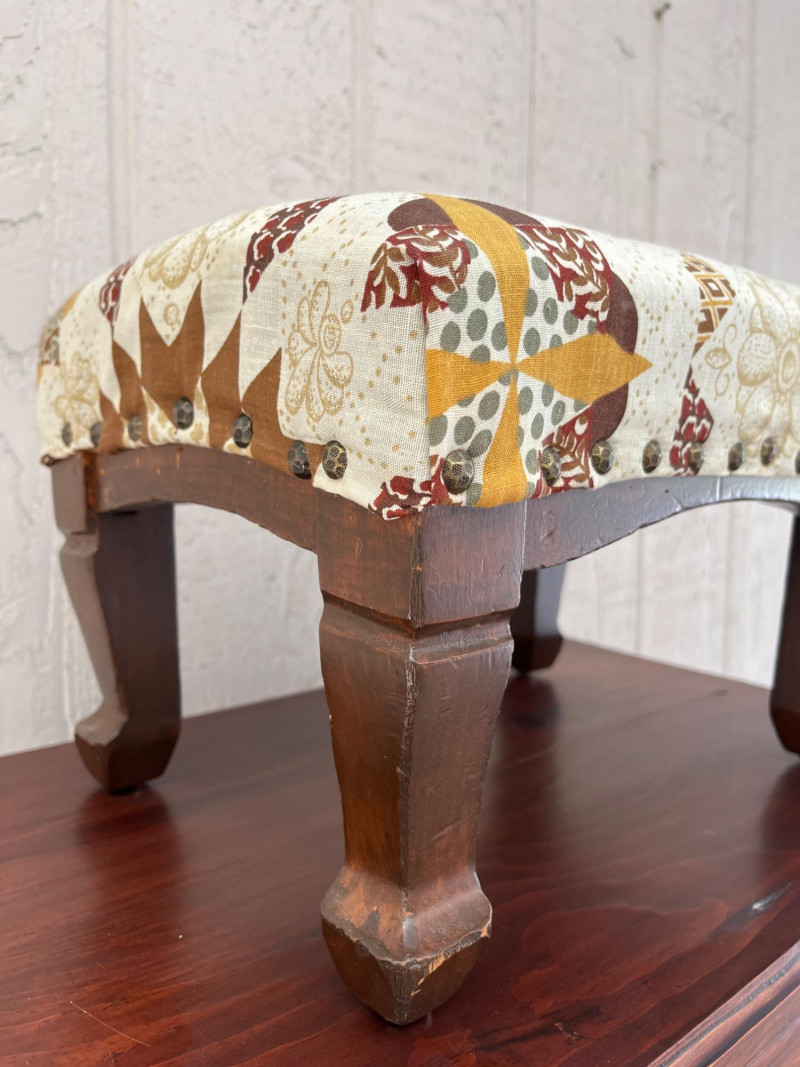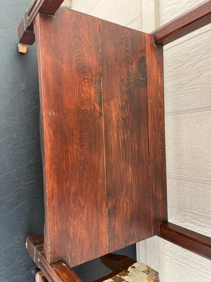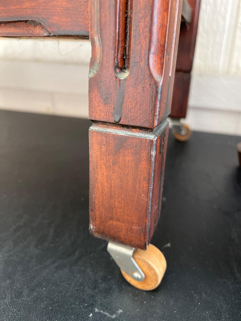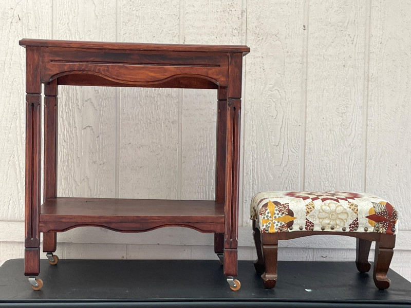 Lot # 74 - Antique Wooden Side Table with Wheels & Small Nailhead Foot Stool