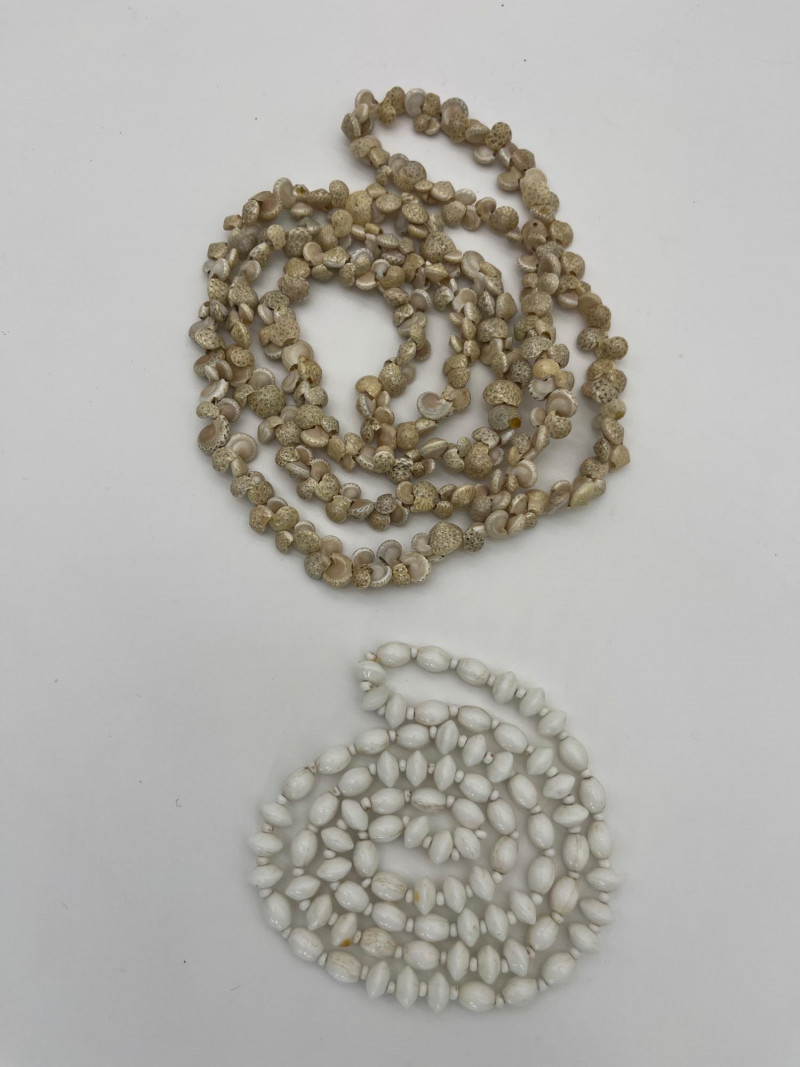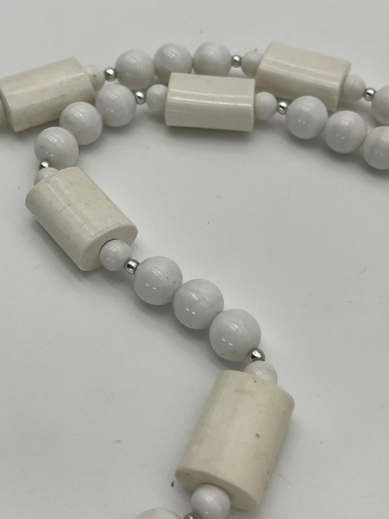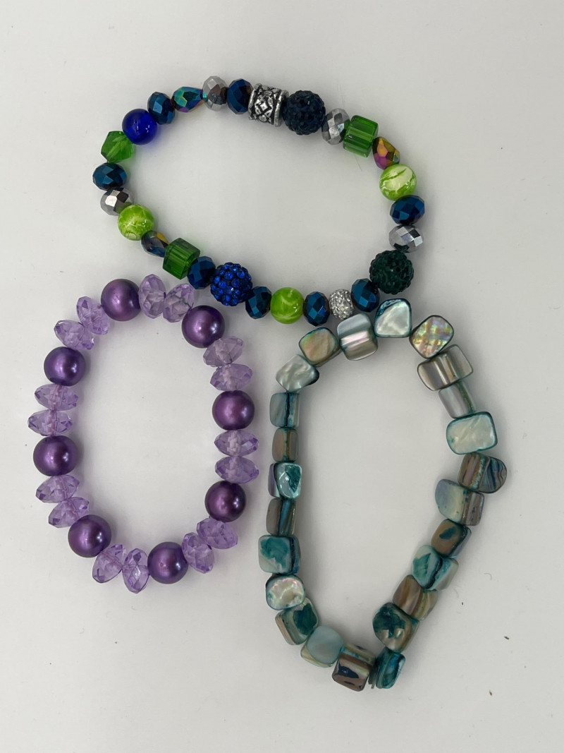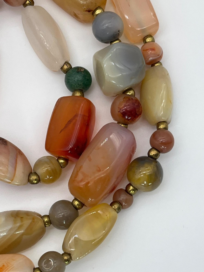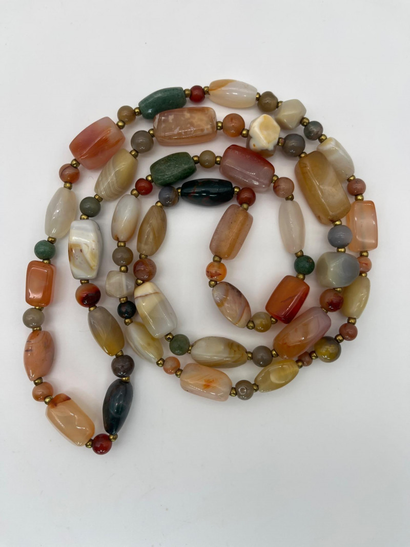Colorful Collection of Beaded Necklaces & Bracelets in Natural & Beads These necklaces range from 18' - 40". Most are natural stone or shell, one is a vintage plastic beaded piece from the 70's. The bracelets are all elastic.