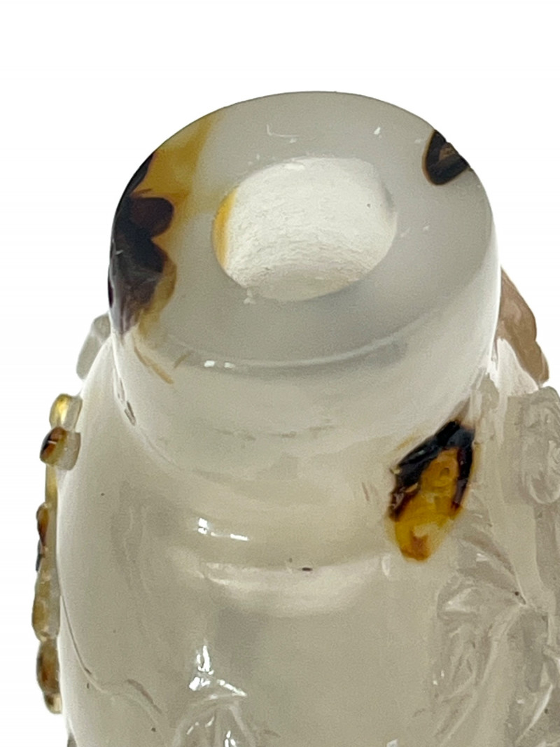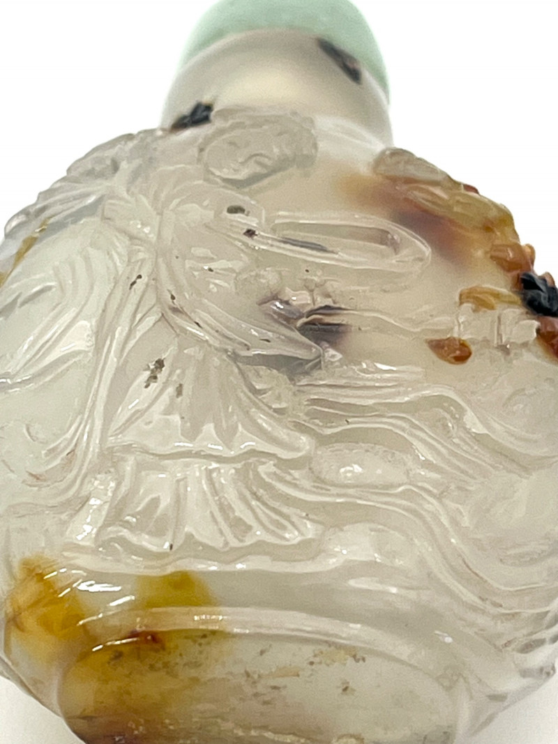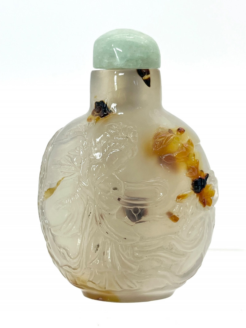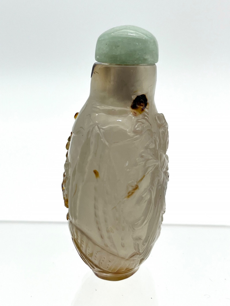 Lot # 2 - Antique Qing Dynasty Carved Agate Snuff Bottle with Jade Lid