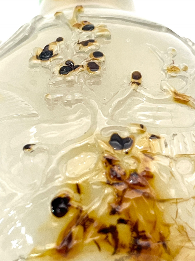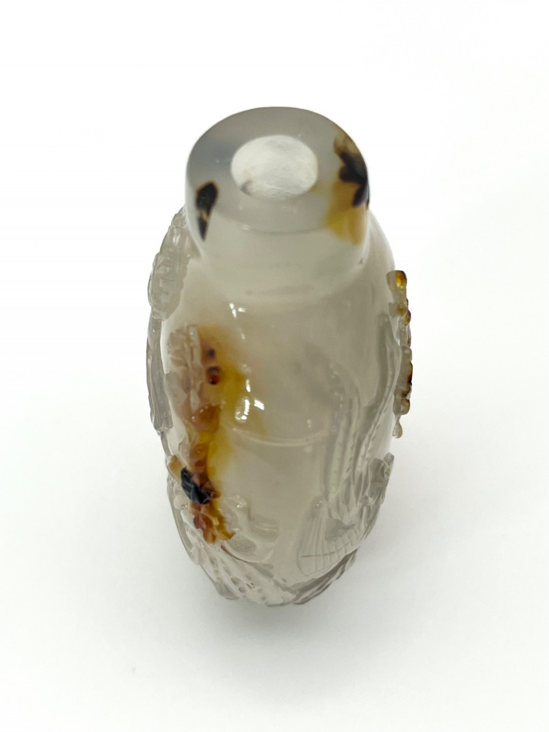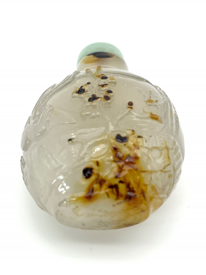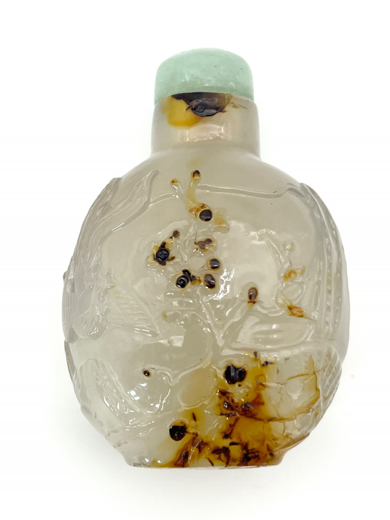 Lot # 2 - Antique Qing Dynasty Carved Agate Snuff Bottle with Jade Lid