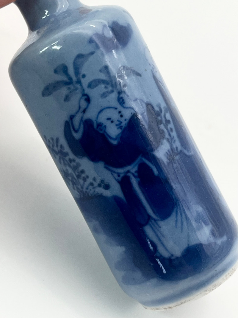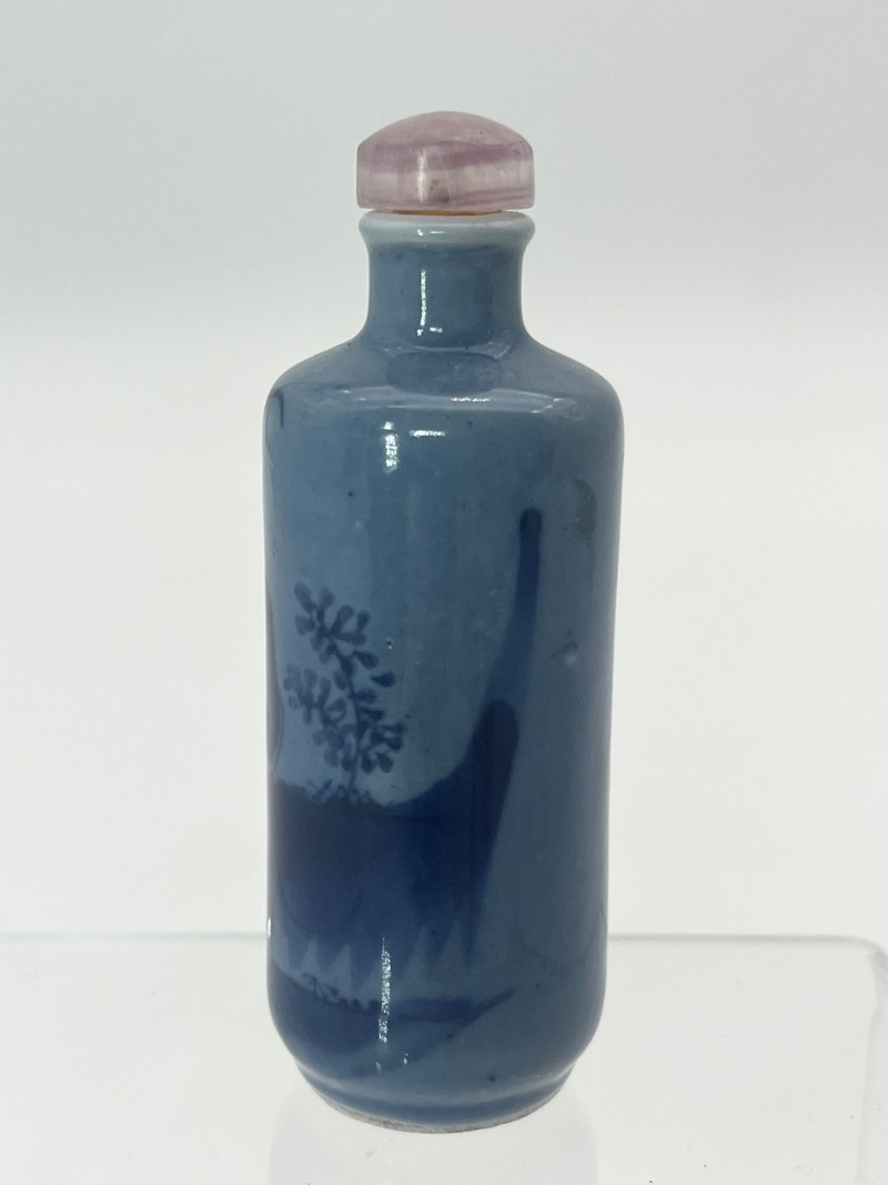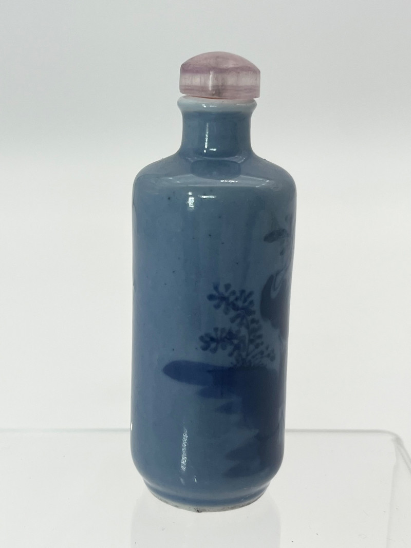 Lot # 4 - Antique Blue Underglaze Ceramic Snuff Bottle with Amethyst Stopper