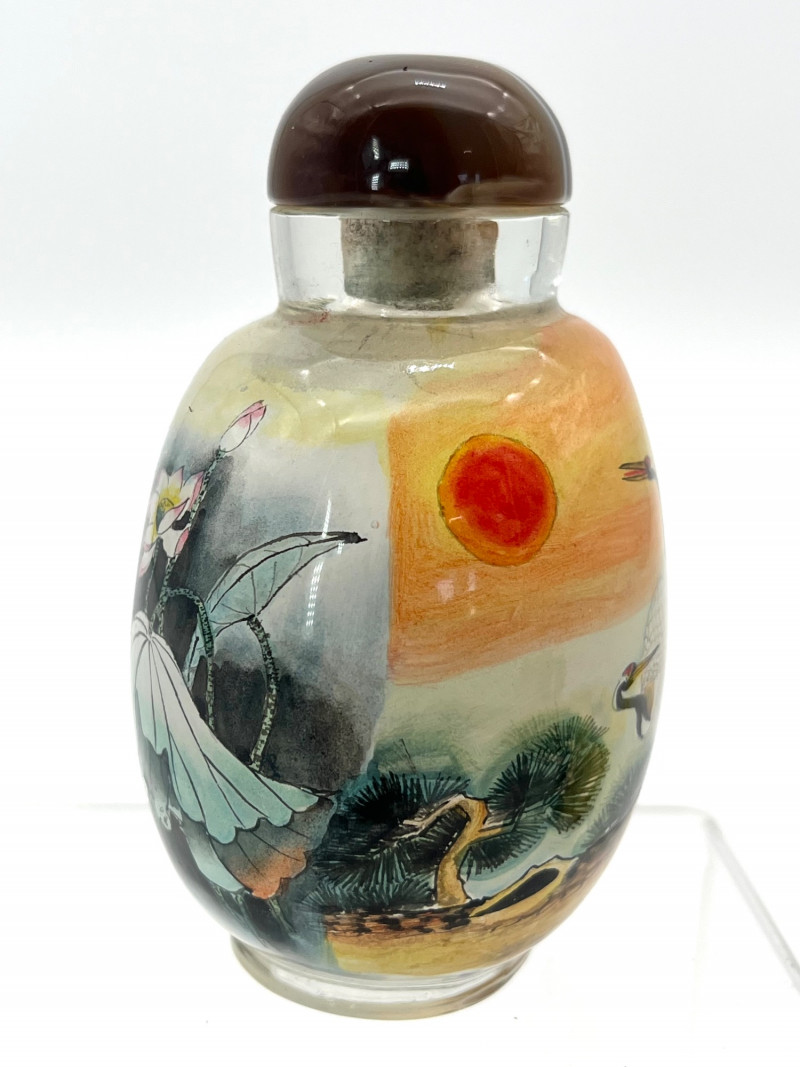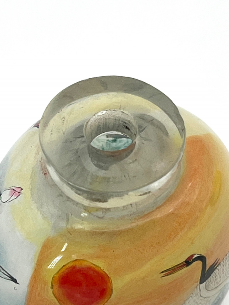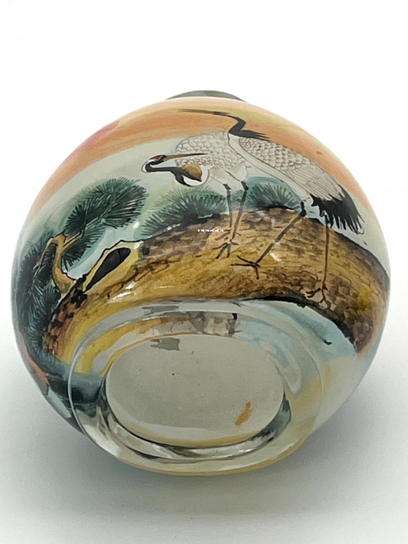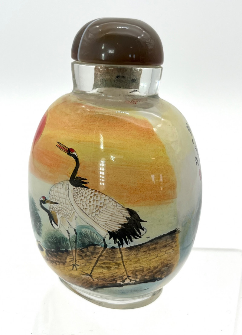 Lot # 13 - Reverse Painted Snuff Bottle with Cranes by Day and Night