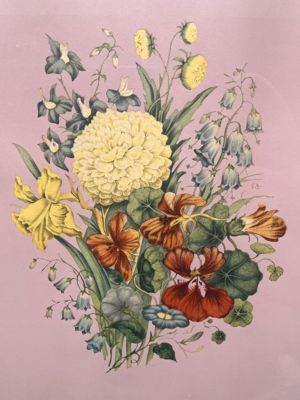 Lot # 27 - Pair of Vintage Floral Art Prints in Carved Wood Frames