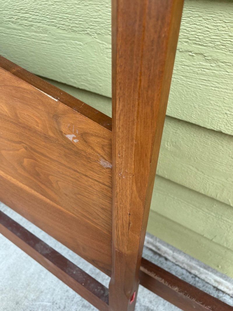 Mid-Century Full Sized Four Post Bed Frame Side rails and top rails not shown. All hardware is included.