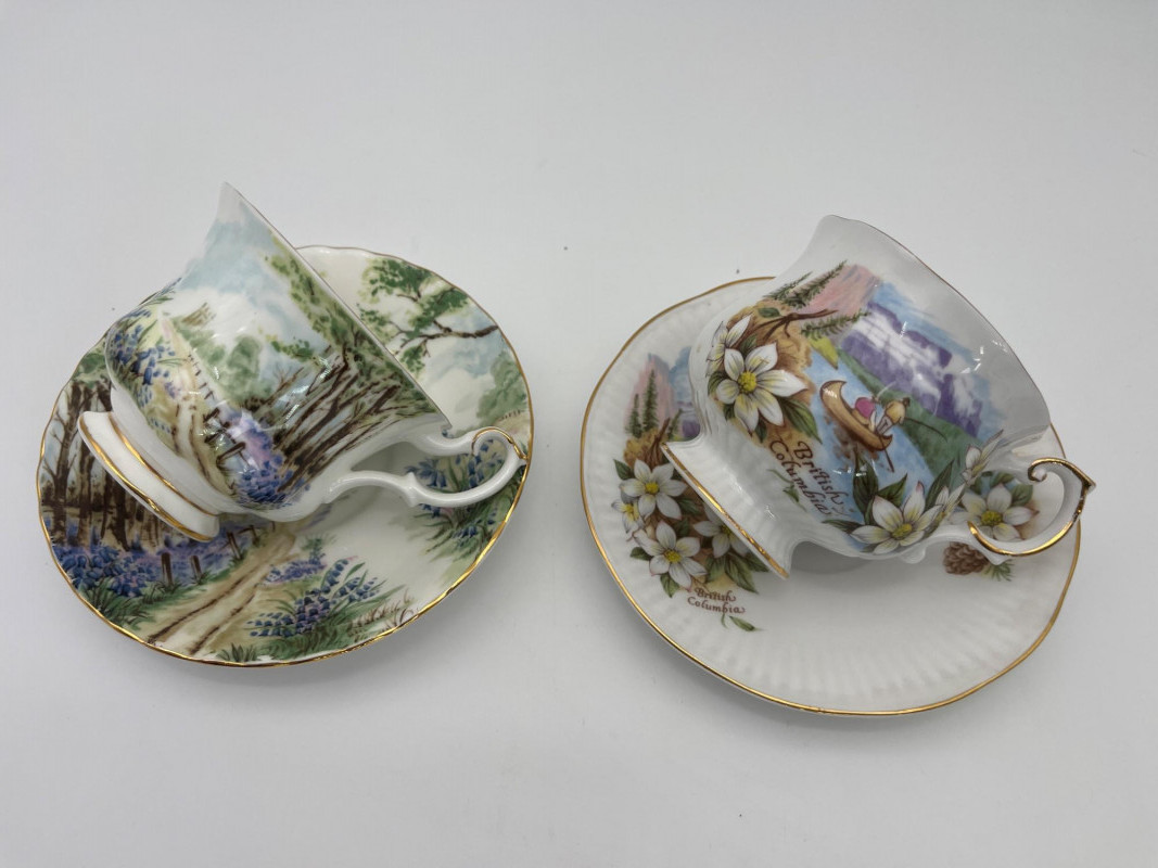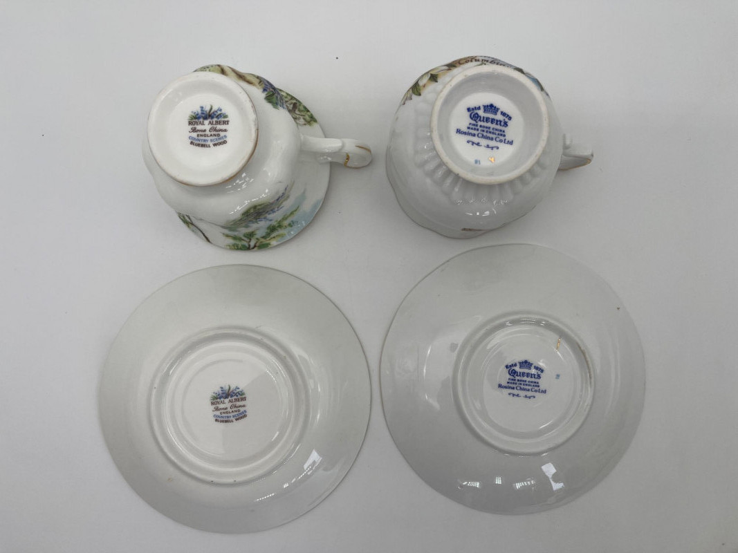 The Royal Albert and Queen’s teacups are both English bone china and in good condition.