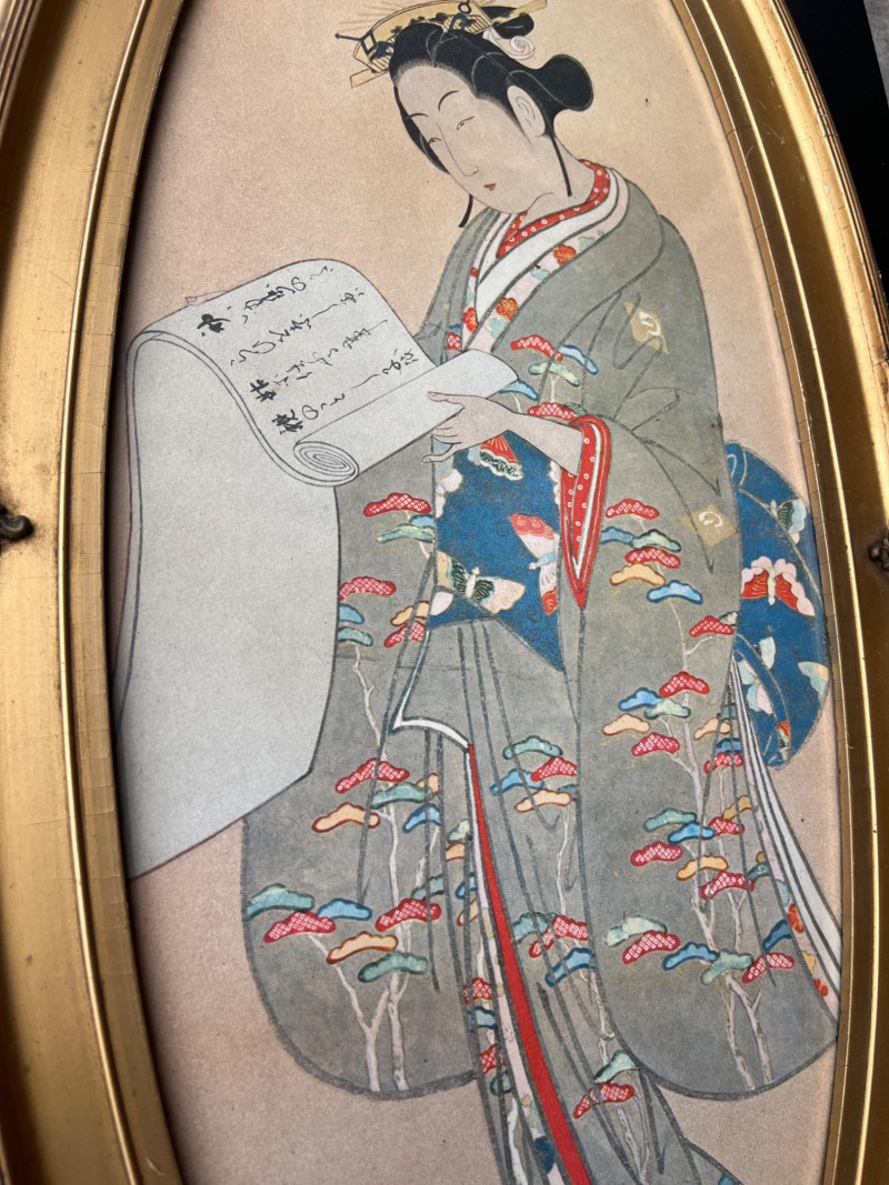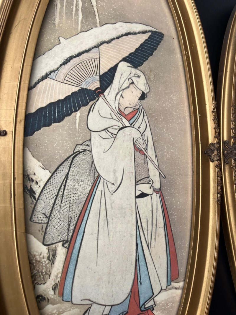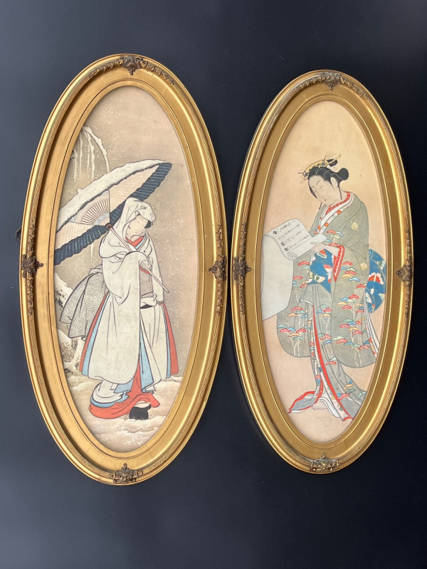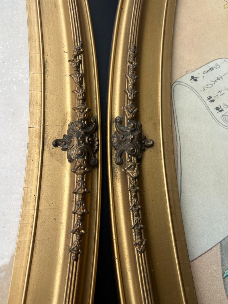 Lot # 36 - Antique Oval Gold Framed Japanese Paintings