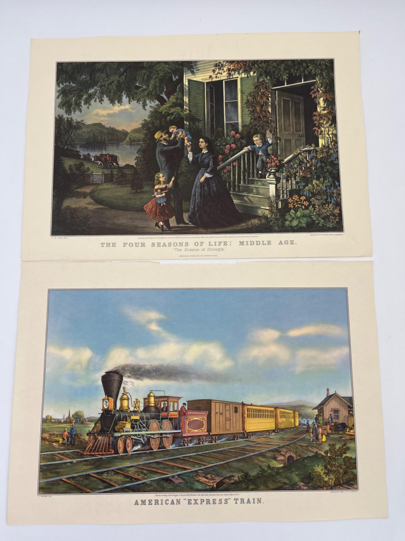 Lithograph Styled Americana Art Clipped From 1950’s & 60’s Calendars These measure 16” x 11.5” and are ideal for cropping and framing for a vintage aesthetic or using in art projects where you want a high quality art sample. There are about 20 pages in this set.