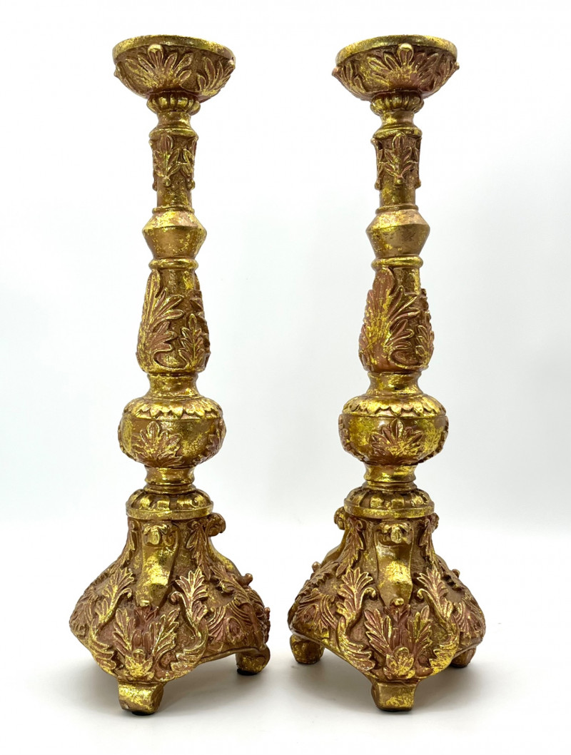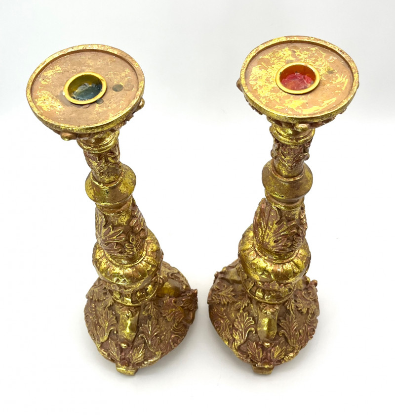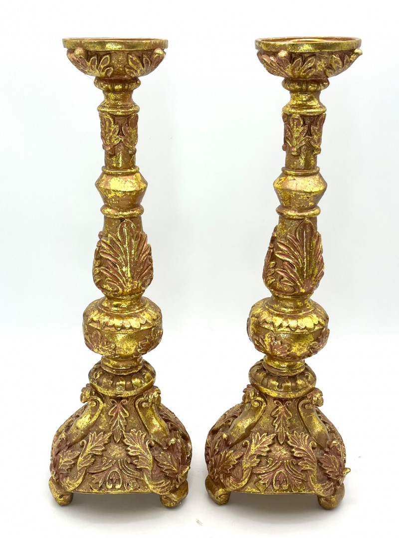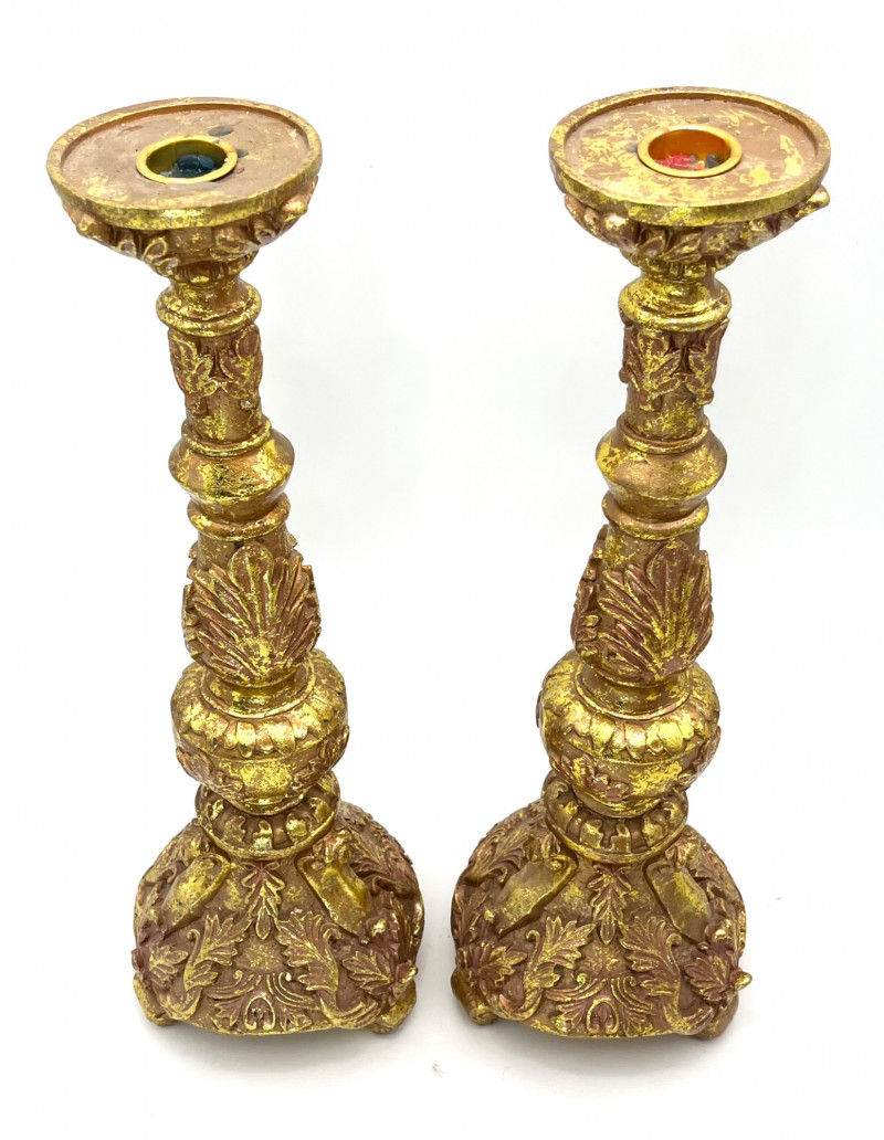 Lot # 56 - Ornate Faux Gold Tapered Candle Holders