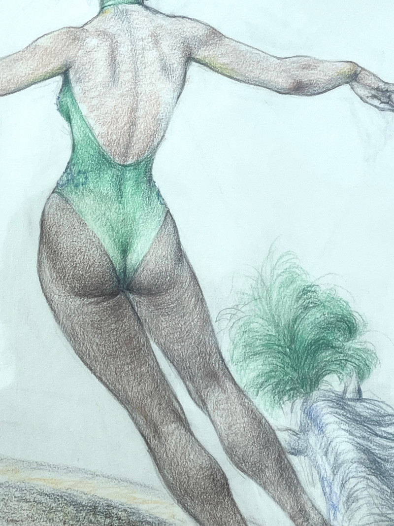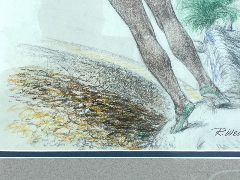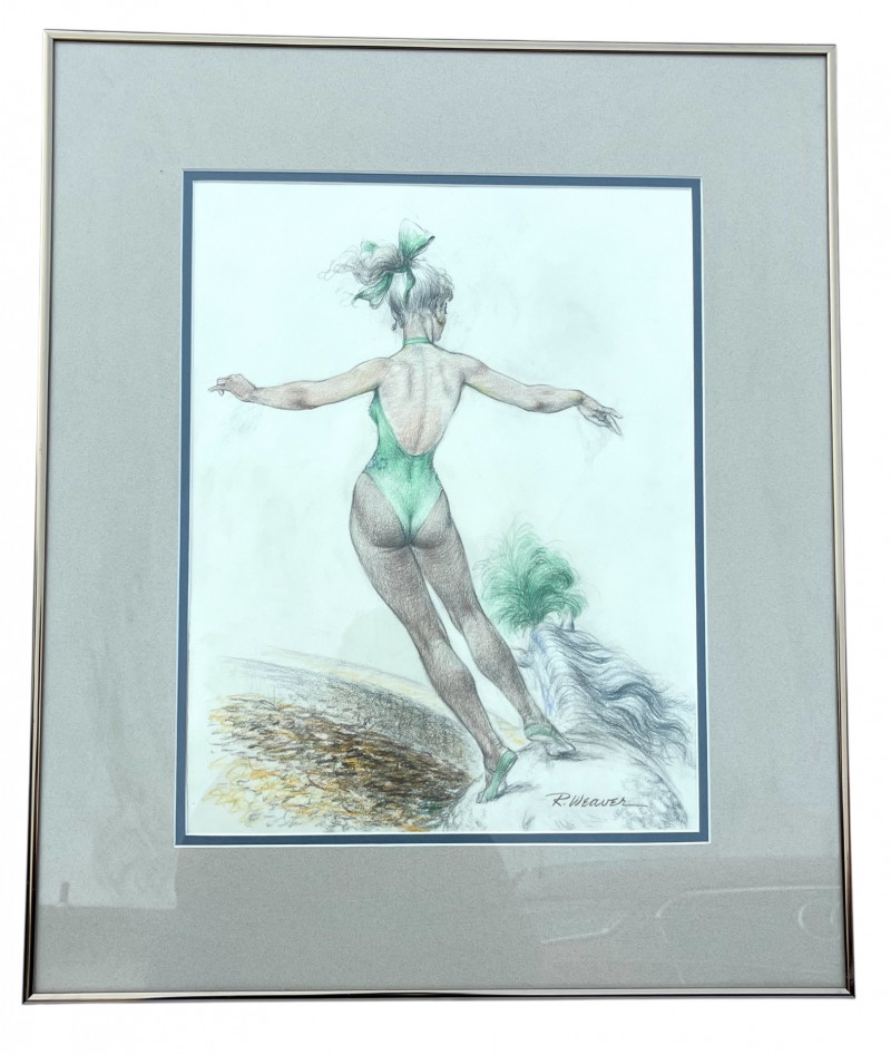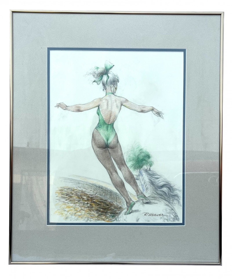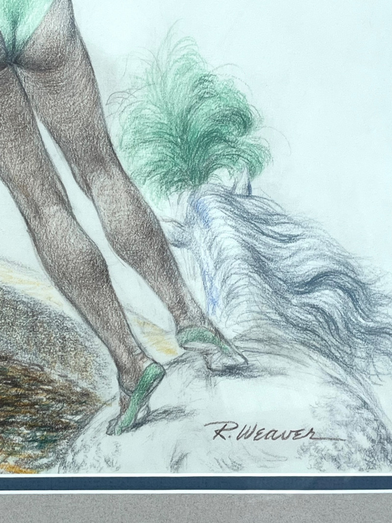 Lot # 64 - Stand Up Rider Mixed Media Drawing Original Signed by Artist R. Weaver