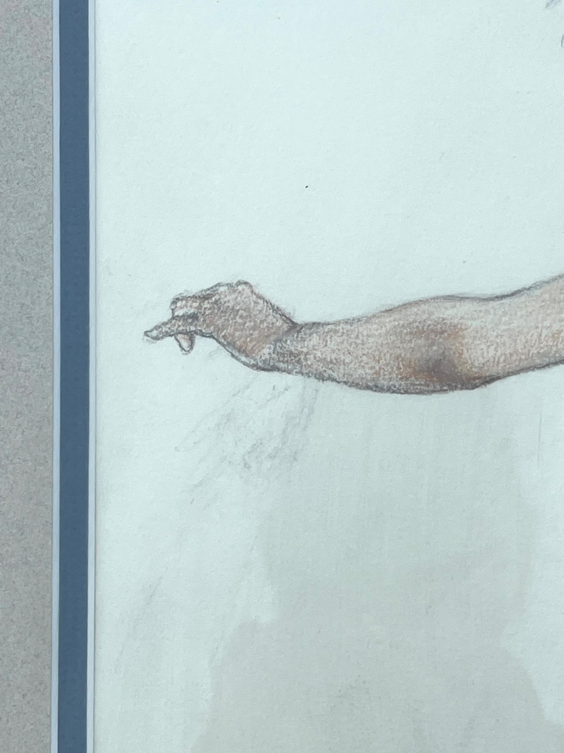 Stand Up Rider Mixed Media Drawing Original Signed by Artist R. Weaver This is an original piece with a story on the back hand written by the artist explaining his inspiration for the piece. It is professionally framed and has a glass front to protect your investment. The frame measures 20" x 24".