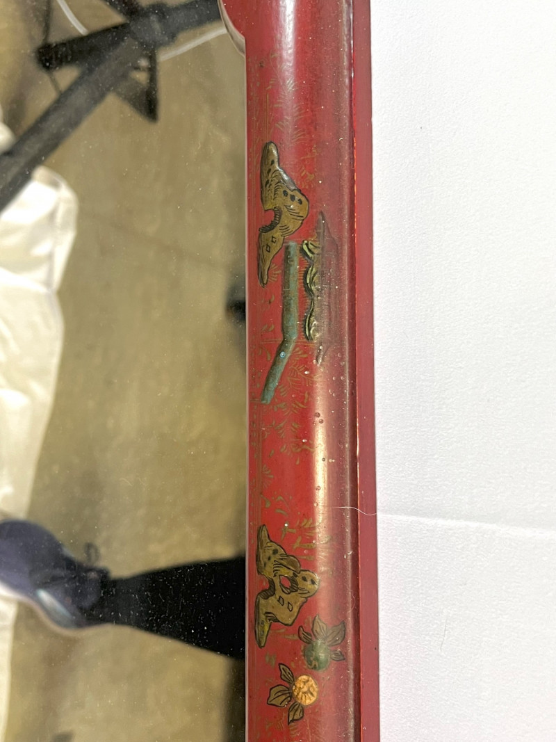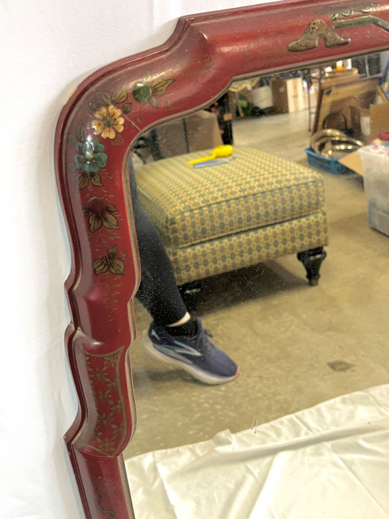 Lot # 68 - D. Milch and Sons Large Framed Mirror Painted in Asian Inspired Motifs