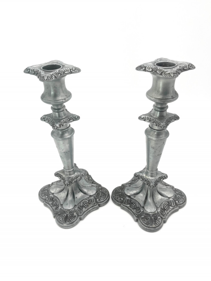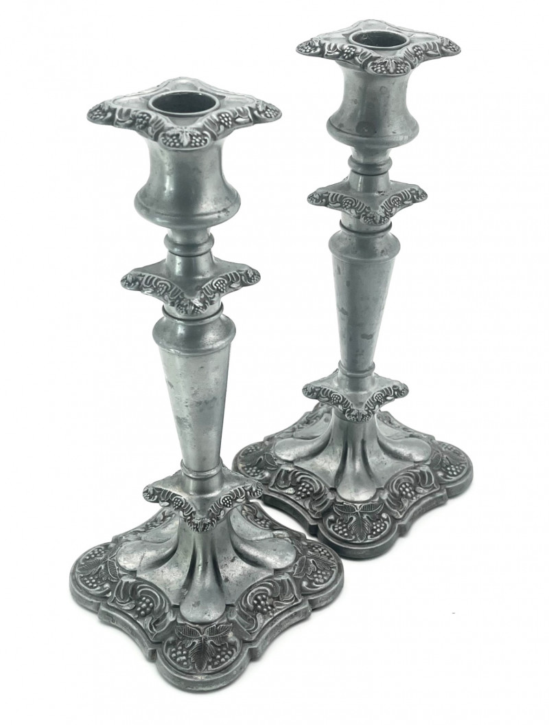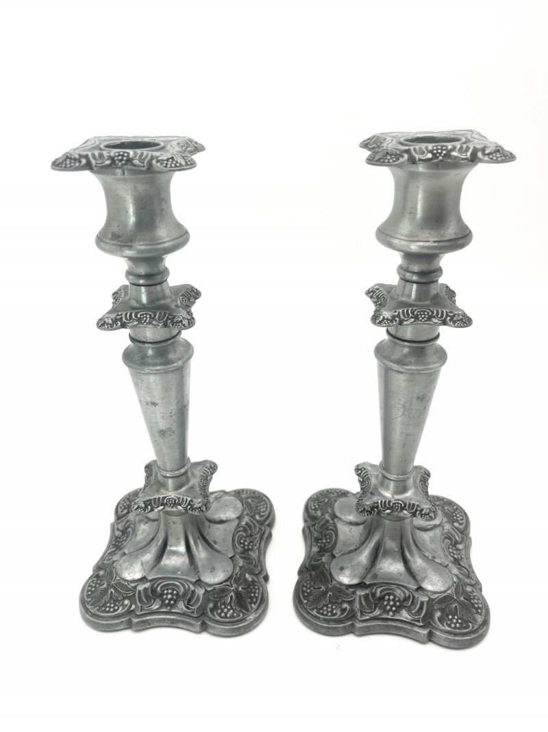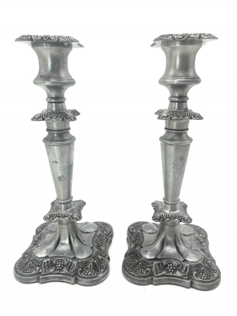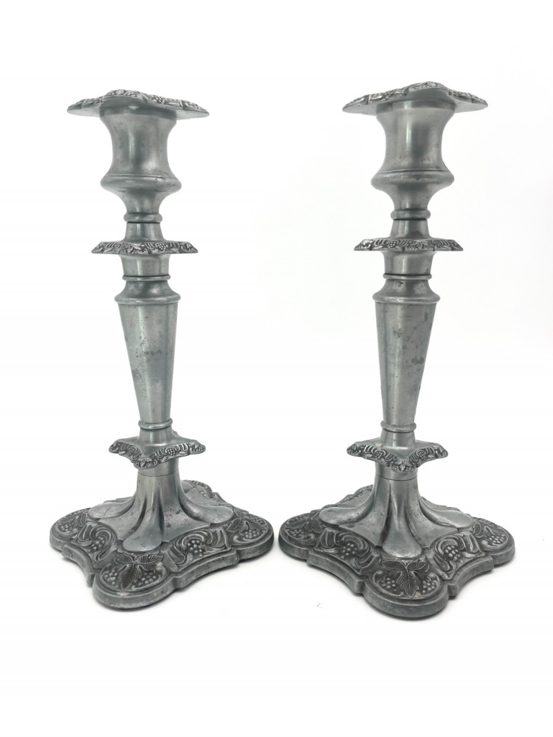 Lot # 69 - Pewter Floral Candlesticks
