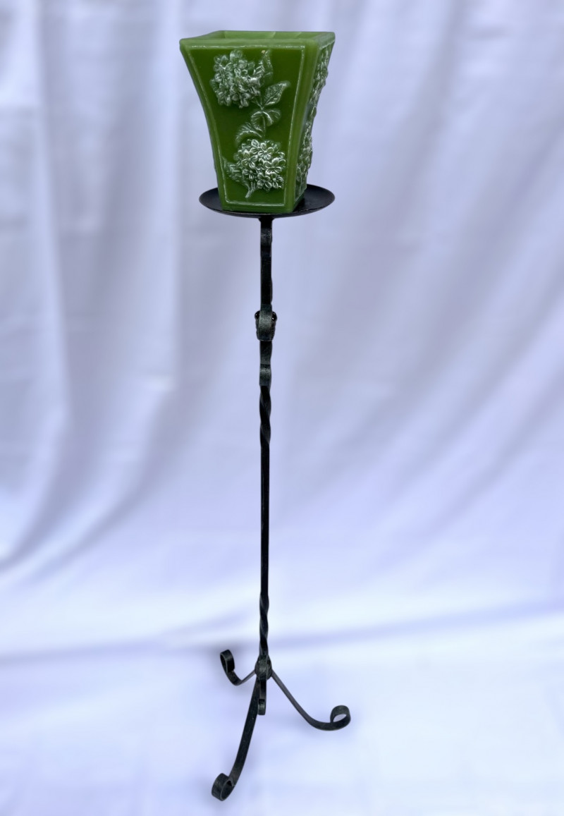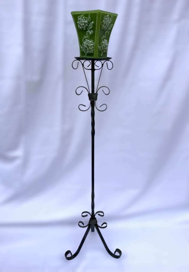 Lot # 95 - Painted Wood Corner Shelf and Tall Metal Scroll Candle Holder