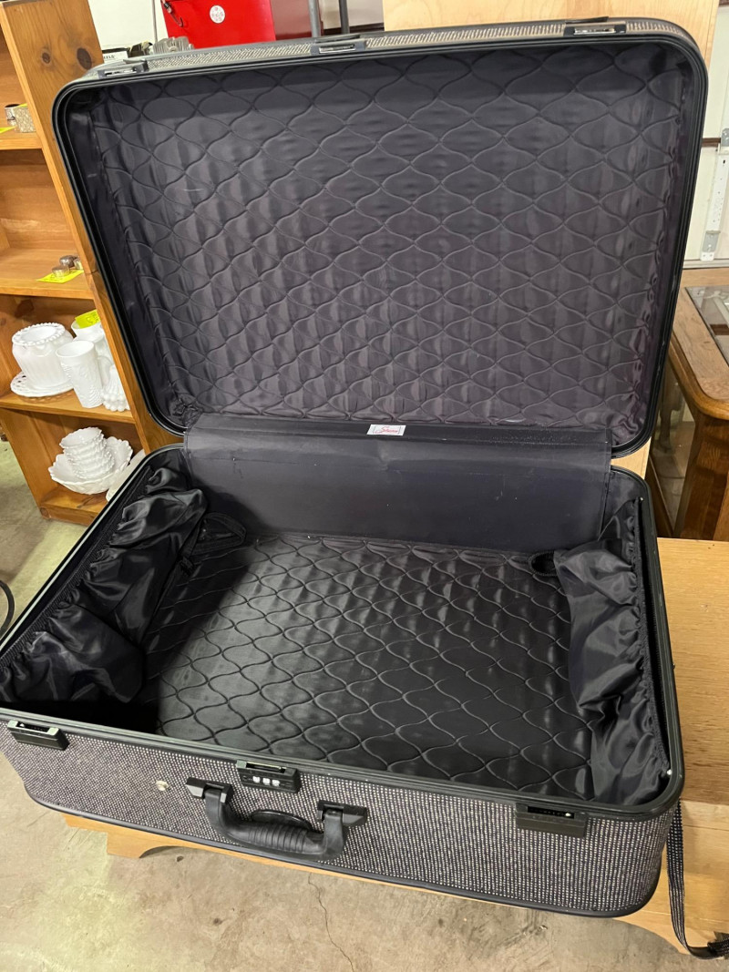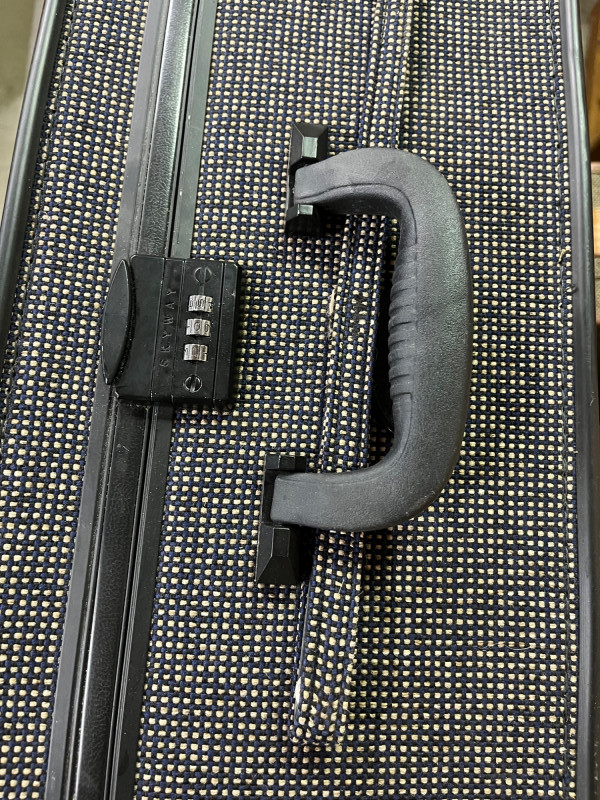 Black Skyway Luggage Suitcase with Wheels and Combo Lock In good condition with working combo lock. Measures 27 1/2" long, 22" tall, and 9 1/2 deep.