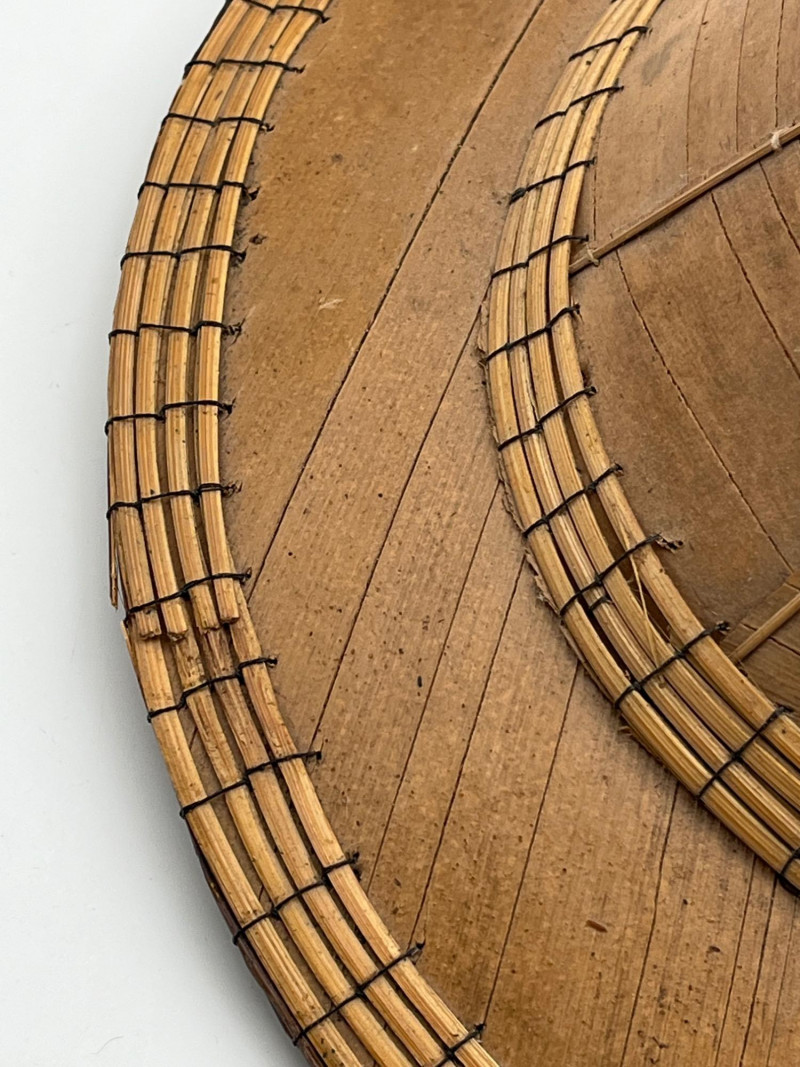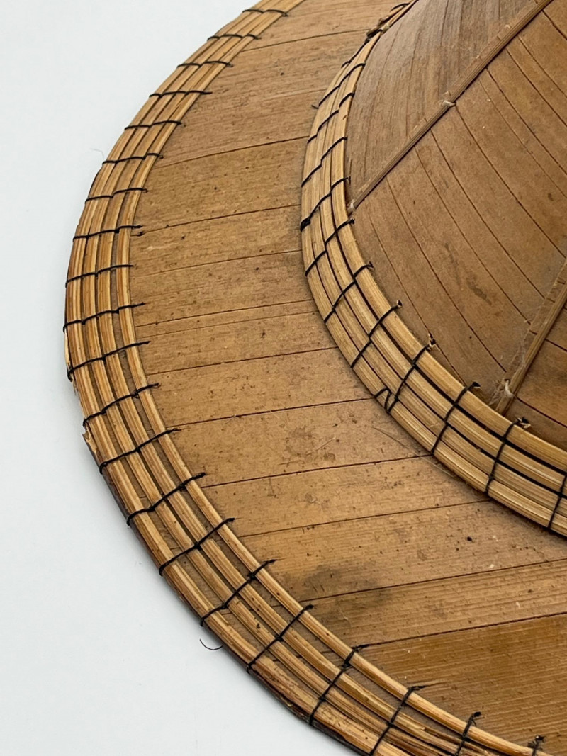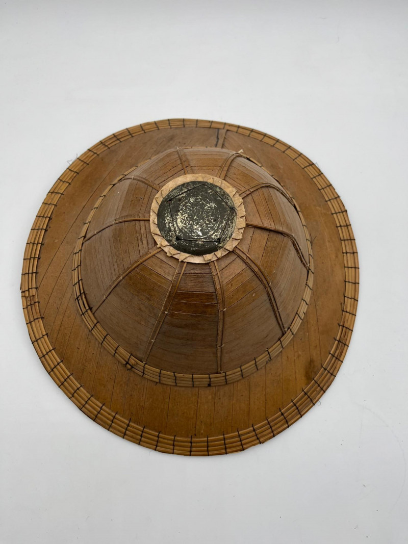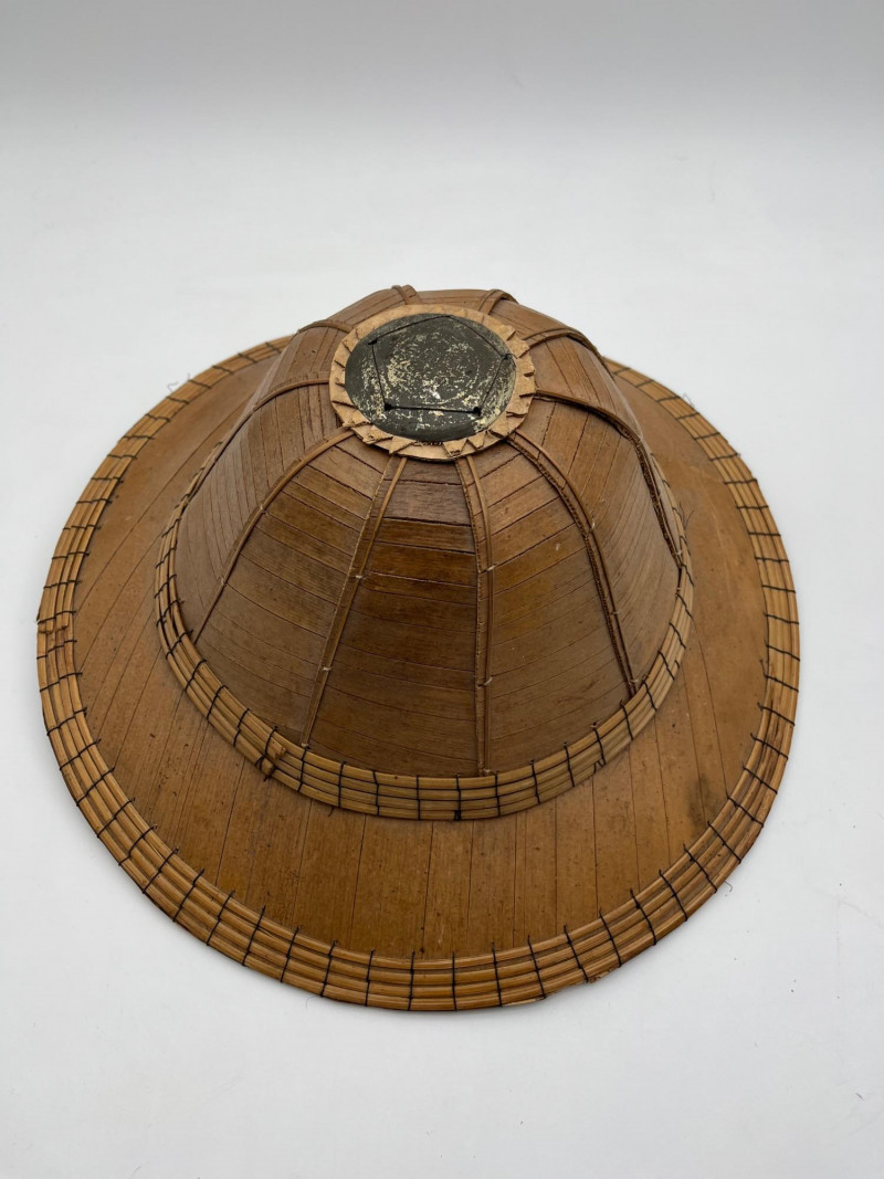 Bamboo or Palm Hand Woven Colonial Style Hat In very good condition. Likely made in the 1970's or 80's. 12 3/4" across, 13 1/2" from front to back.