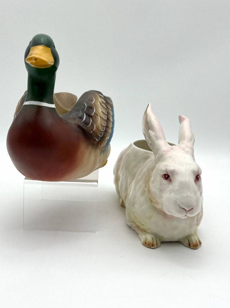 Lot # 30 - Mallard Duck and Bunny Ceramic Planters