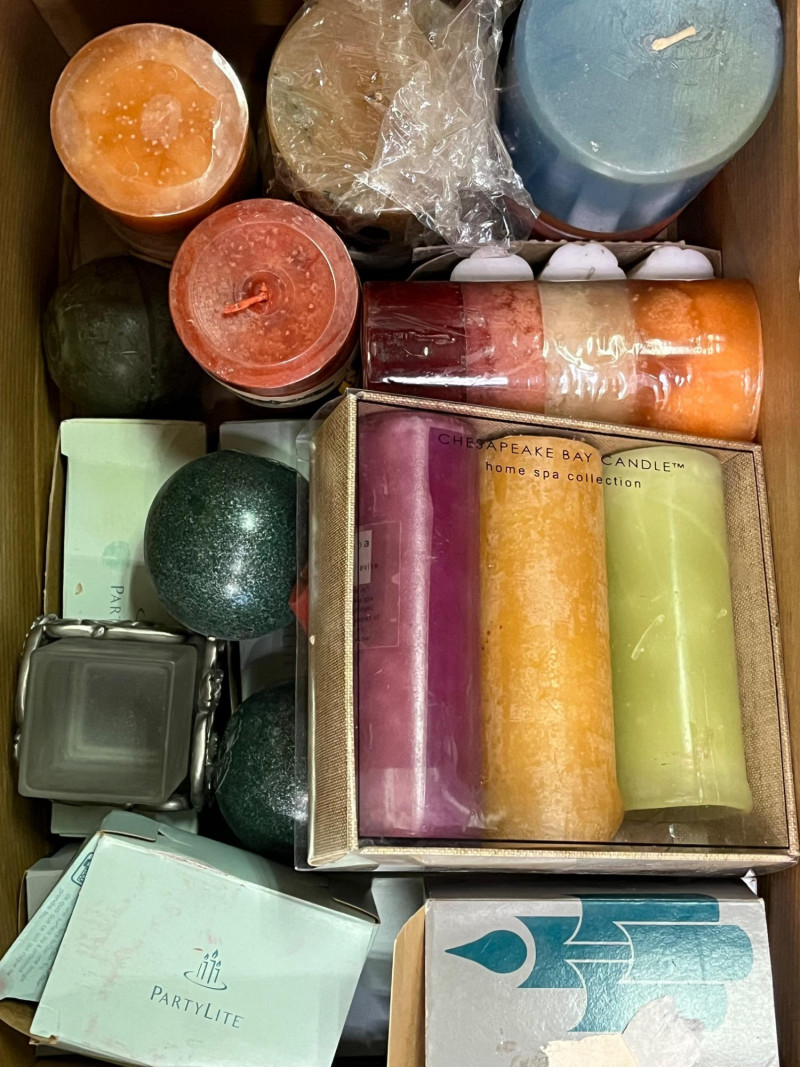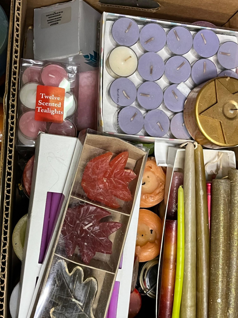 Four Boxes of New or Almost New Candles Candles There are at least 100 candles here, mostly unused.