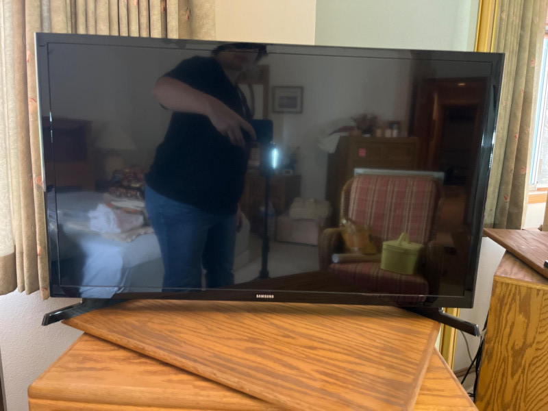 Lot # 48 - 32” Samsung Flatscreen TV with VCR on Cabinet with Swivel Top