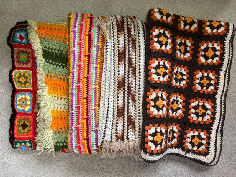 Lot # 30 - Handmade Crocheted Afghan Blankets - Lot of 5 in Various Sizes