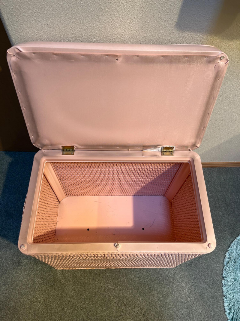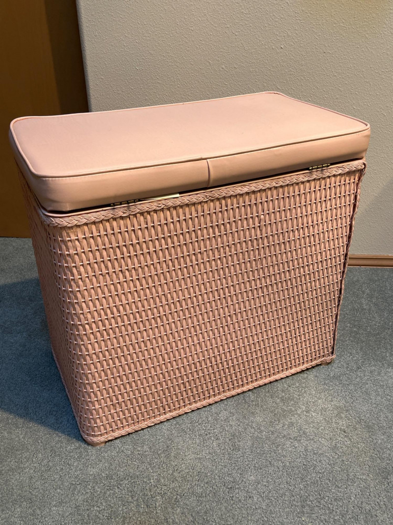 Lot # 18 - Vintage 1960's Pink Clothes Hamper with Padded Seat Top
