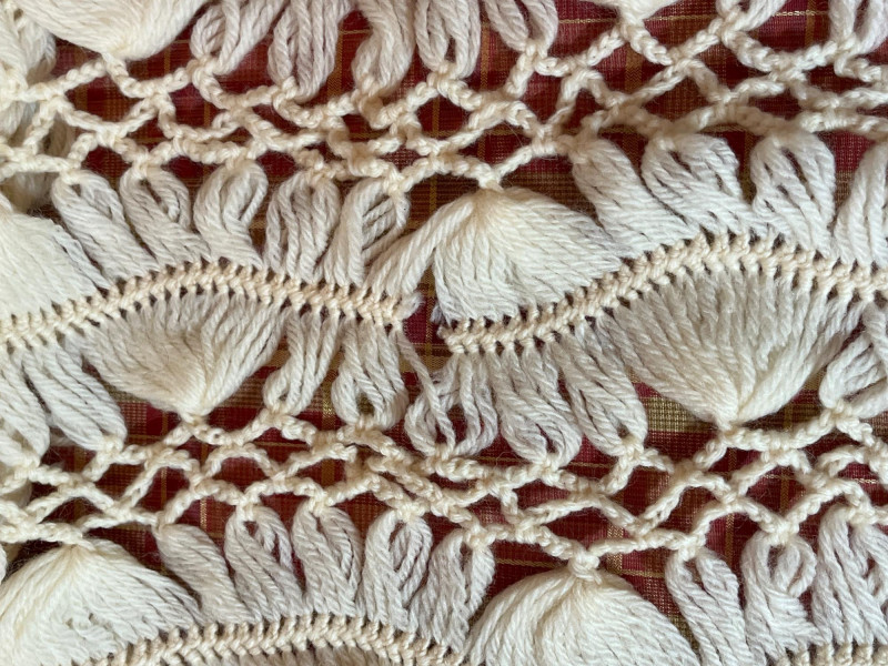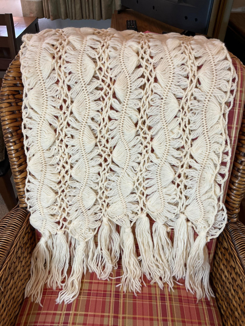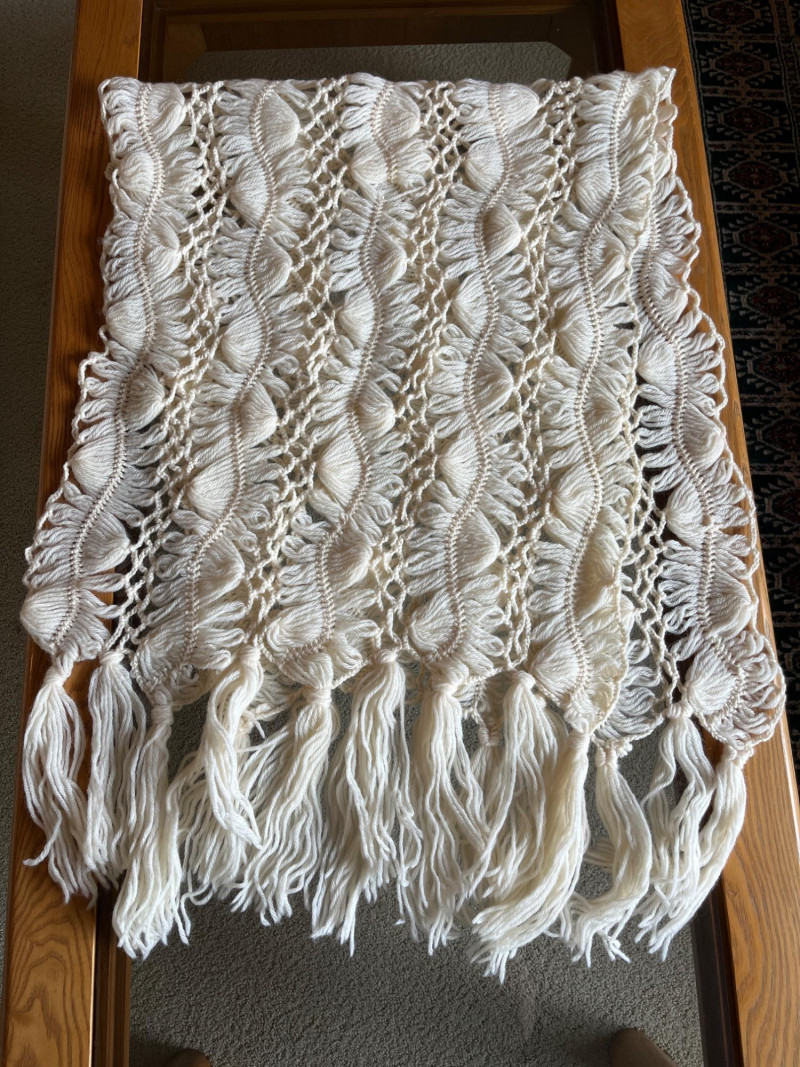 Lot # 21 - Vintage Hand Knit Handwoven Cream Colored Wool Scarf / Shawl