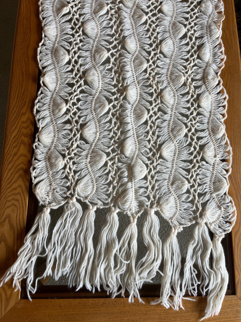 Vintage Hand Knit Handwoven Cream Colored Wool Scarf / Shawl 20" wide and 52" long with 6" long fringe on both ends. Absolutely stunning!