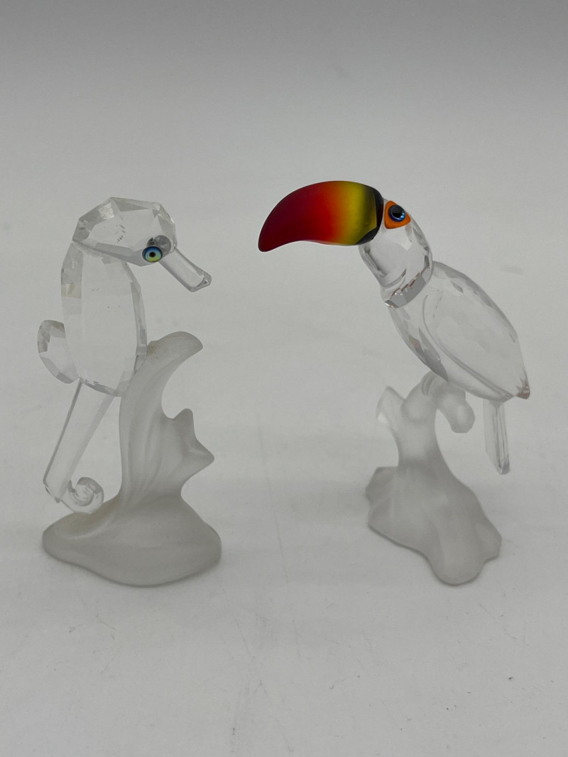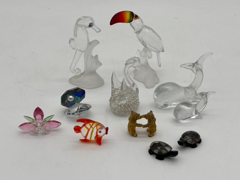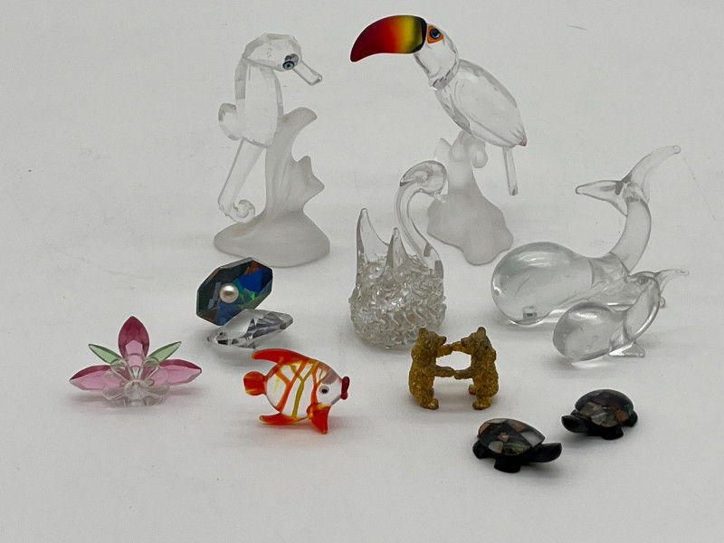 Miniature Crystal, Brass, and Marble Animals Collection Tallest piece (toucan) is only 3.5" tall! All pieces are in good condition and absolutely adorable! The toucan and seahorse are Swarovski.