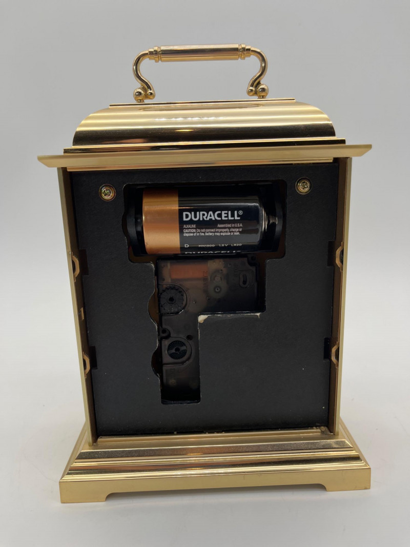 Howard Miller Gold-Tone Boeing 30th Anniversary Battery Powered Clock Stands 9" tall and takes a C battery. Untested but cosmetically in very nice condition.