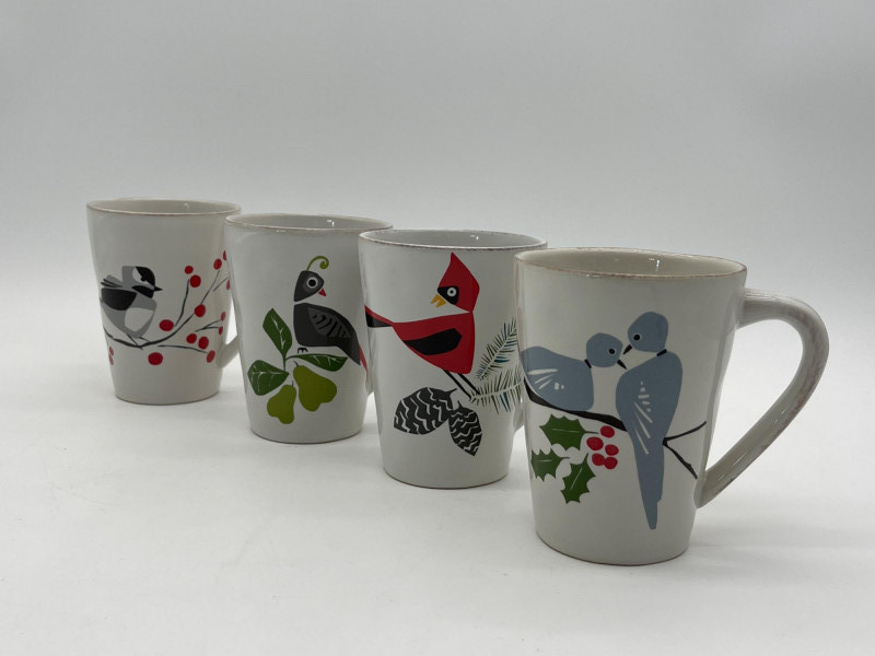 Lot # 33 - Crate & Barrel Marin Winter Birds Set of 4 Mugs