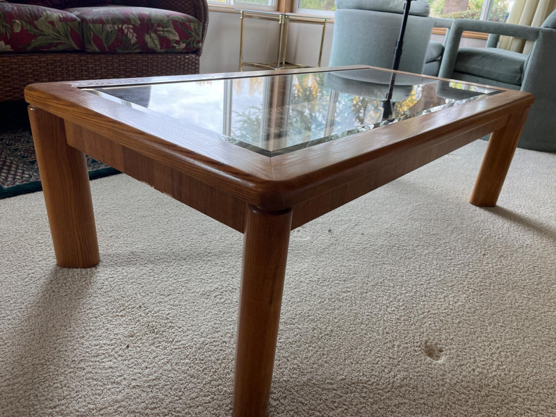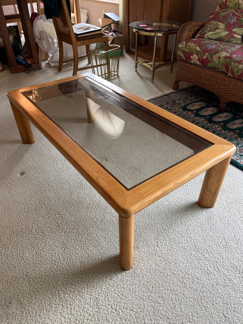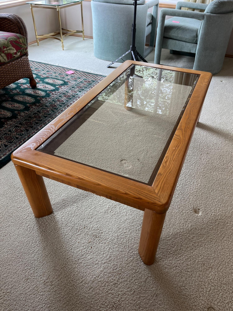 Lot # 45 - Large Rectangle Oak and Tinted Glass Glass Coffee Table
