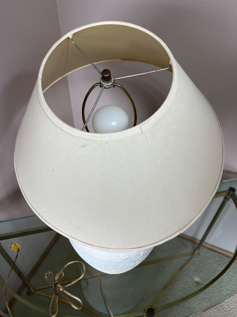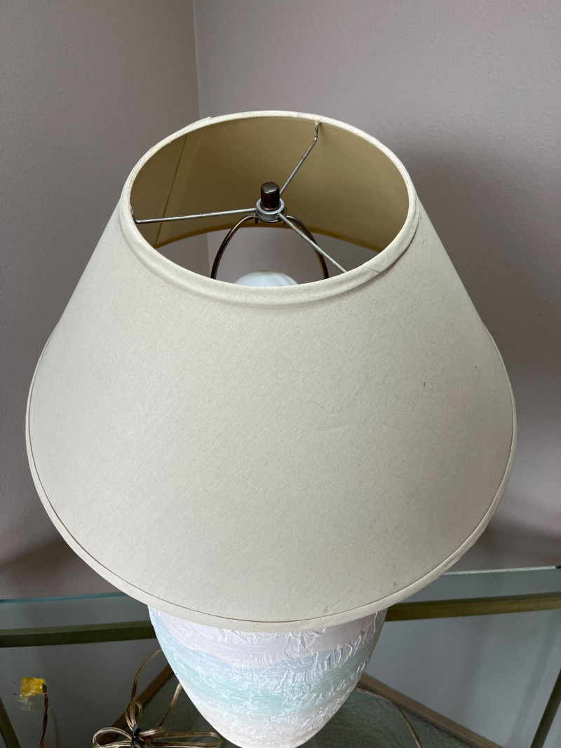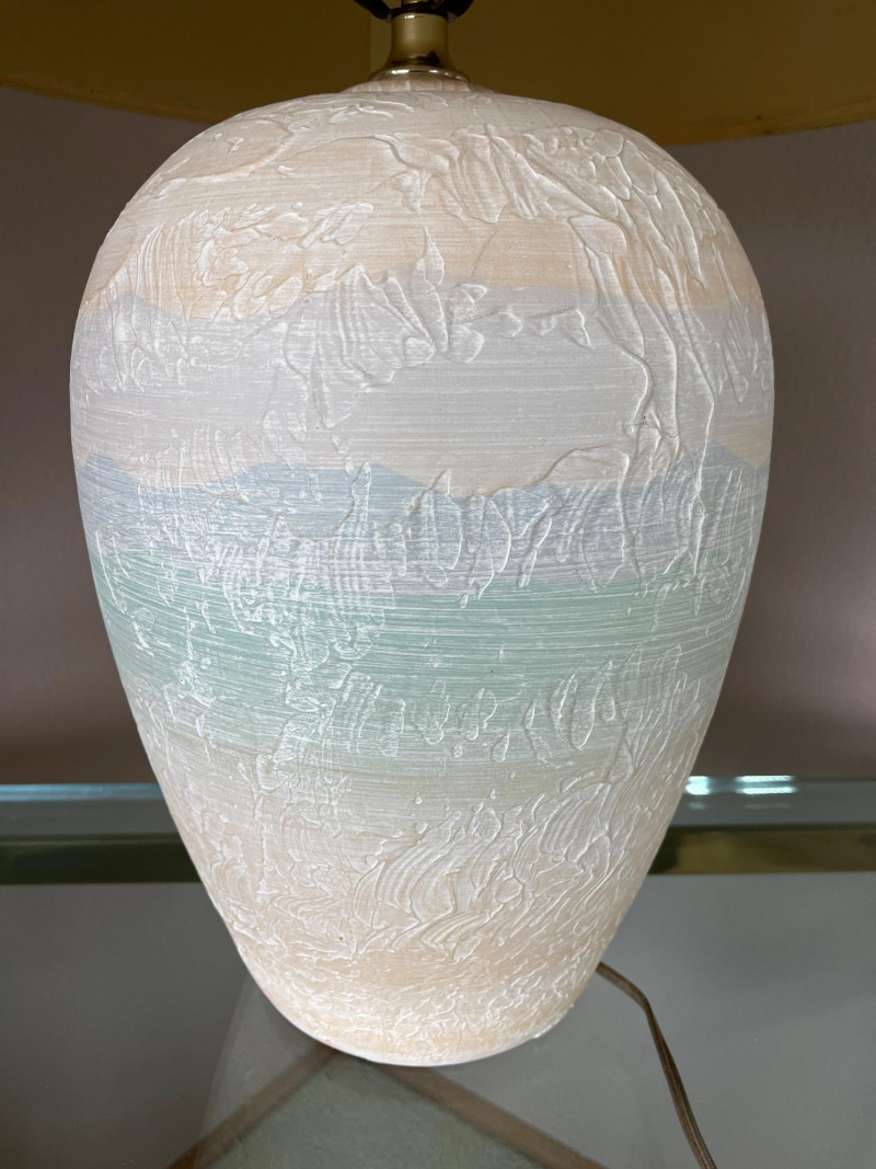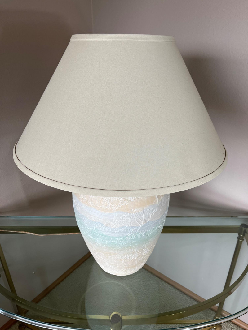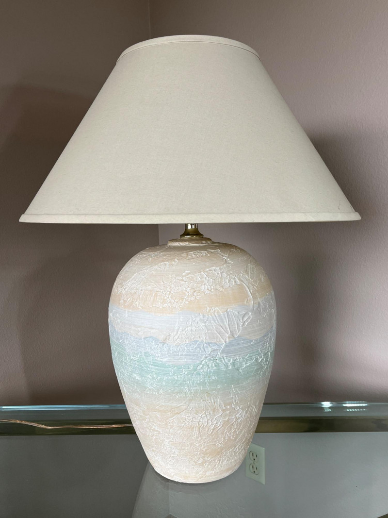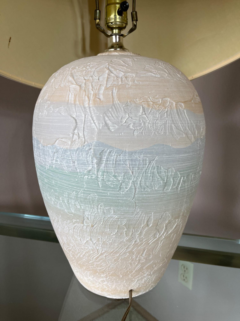 Textured Finish 26" Tall Plaster Table Lamp with Shade This is a classic look from the 1980's and a style that is rapidly regaining popularity! This lamp is in good, working condition with no damage.